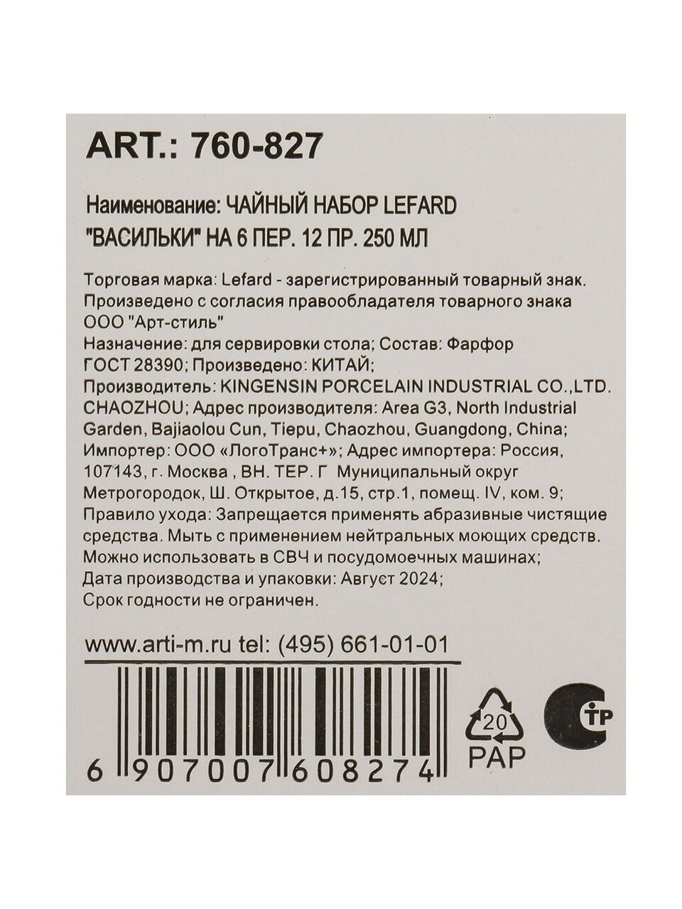 Чайный набор Lefard «Васильки» на 6 персон: изысканный фарфор, 12 предметов, подарочная упаковка — идеальный выбор для дома, дачи и подарка.