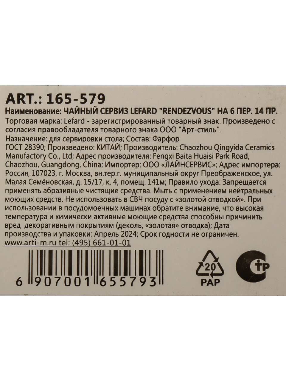 Чайный сервиз фарфор, 14 предметов, на 6 персон, 250 мл, Lefard, Rendezvous, 165-579, подарочная упаковка