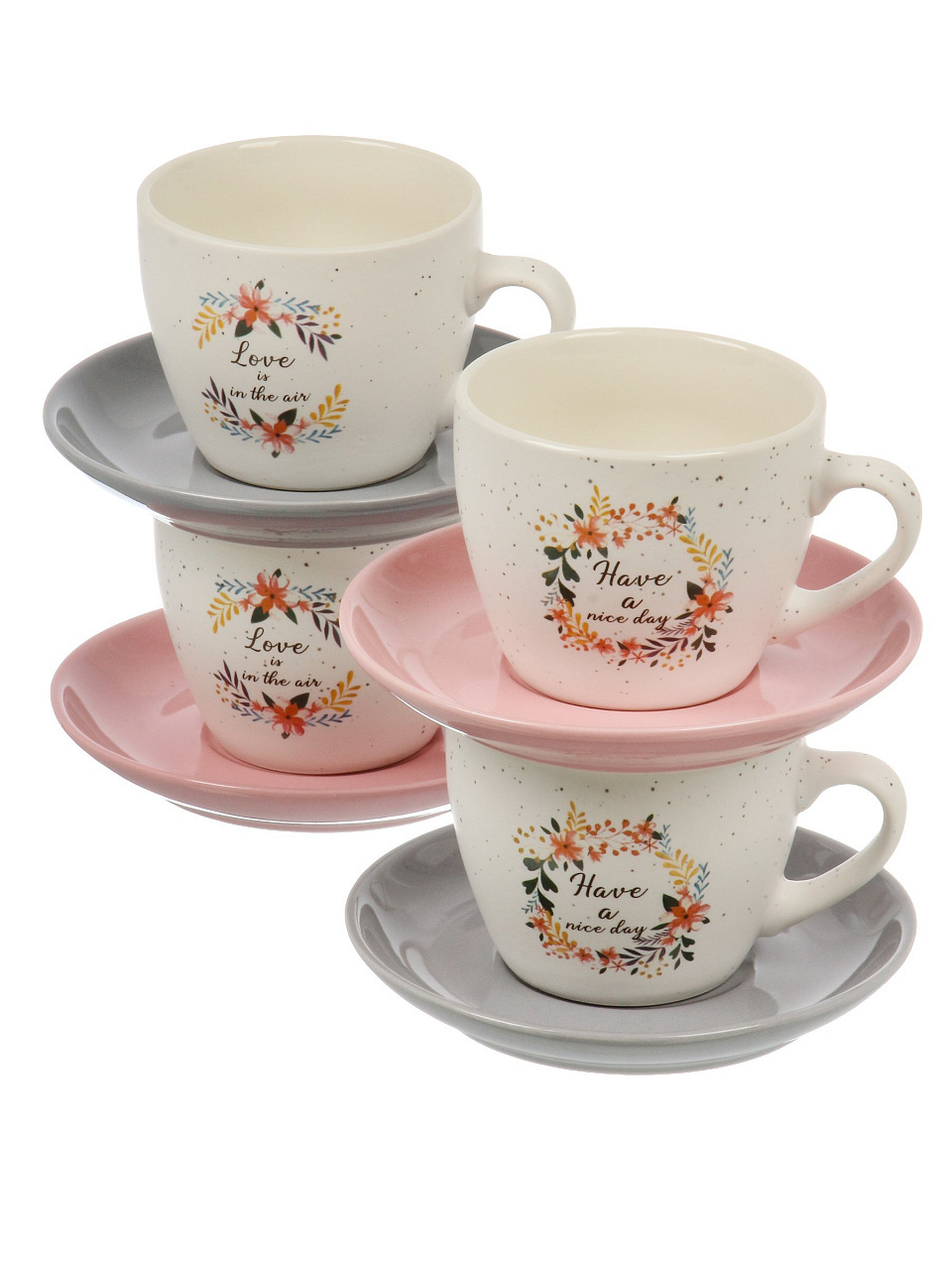 В наборе 4 чашки объёмом 240 мл, всего 8 предметов — рассчитан на 4 персоны.