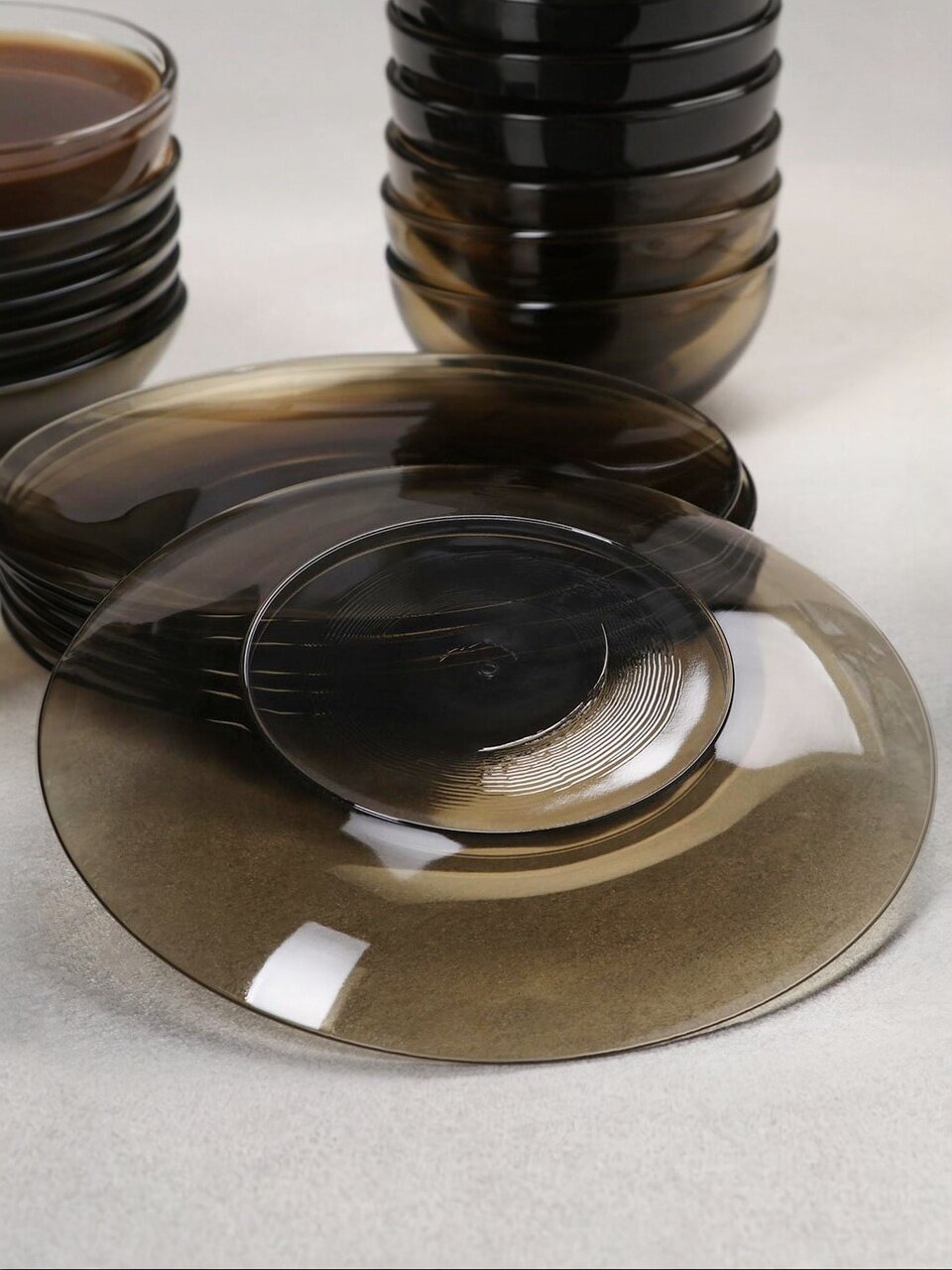 Цвет — дымчатый (коричневый), что придаёт сервировке современный и элегантный вид, подходит для разных интерьеров.
