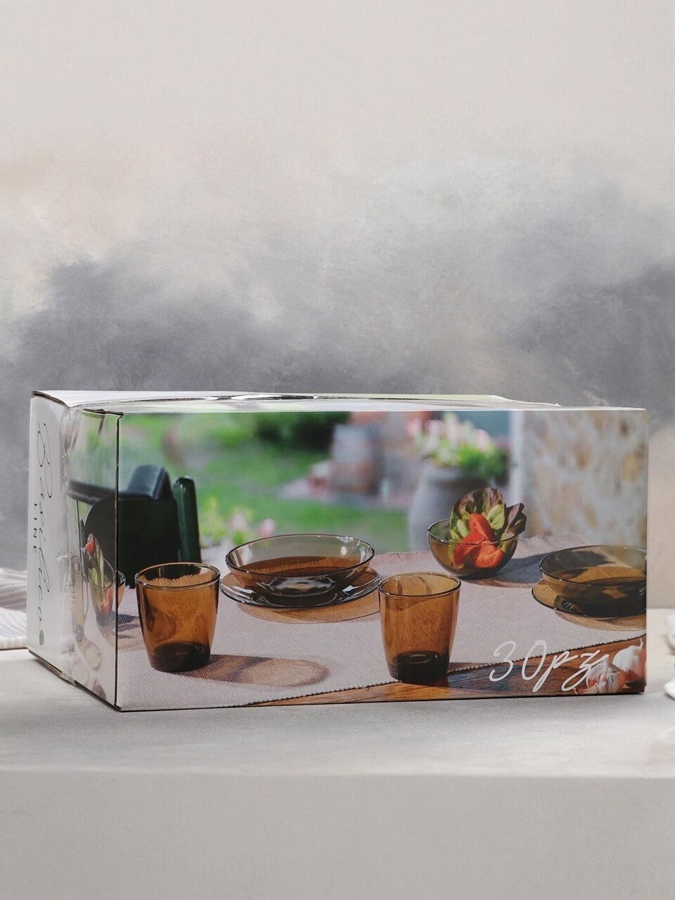 Столовый сервиз из дымчатого стекла на 6 персон (30 предметов, Basilico 62076) — стильный выбор для сервировки дома, дачи или подарка. Прочный, современный, легко моется.