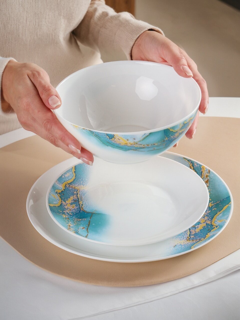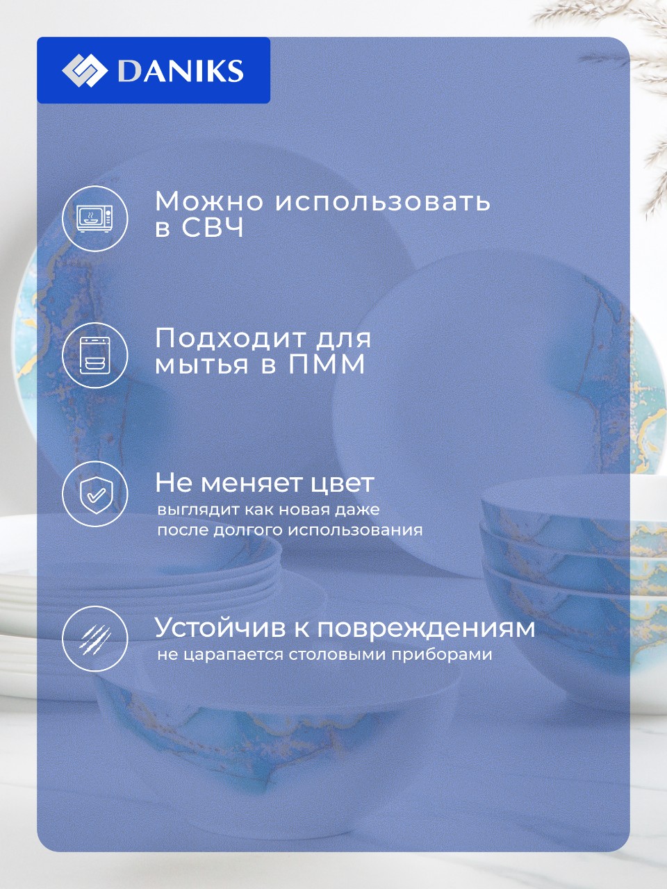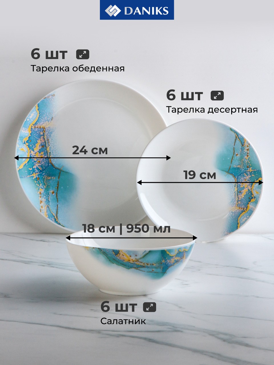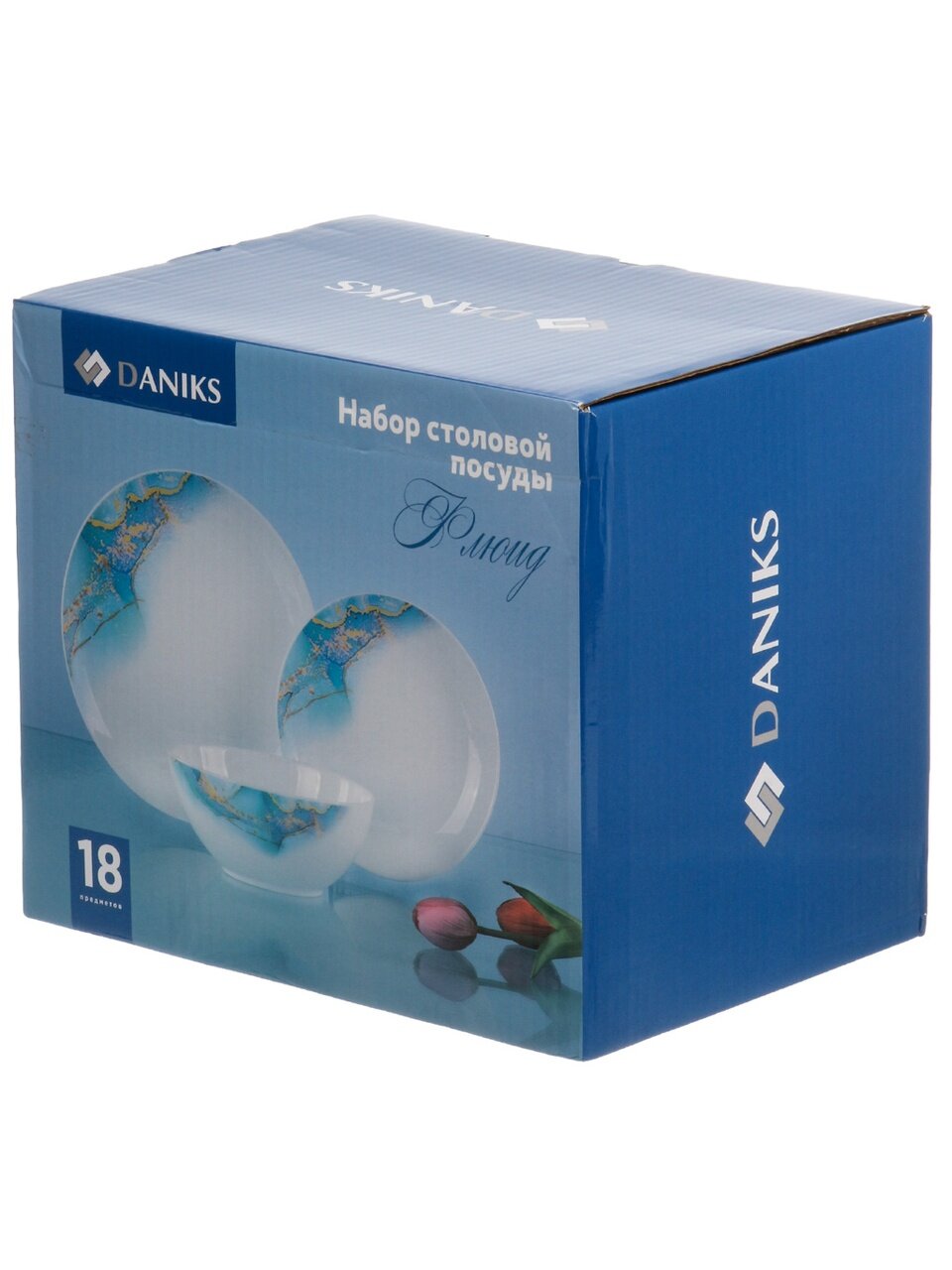 Столовый сервиз из стеклокерамики Daniks Флюид (18 предметов, 6 персон, синий) — стильное решение для сервировки, подходит для дома, дачи и ежедневного использования.