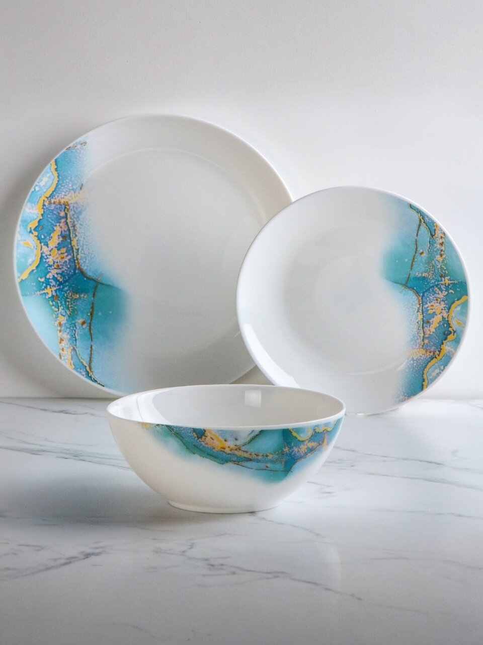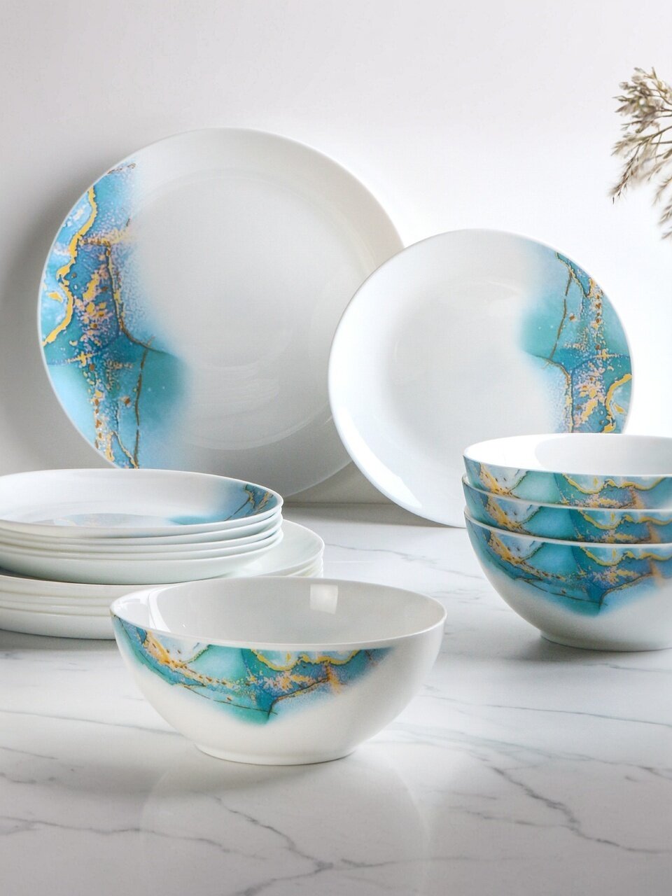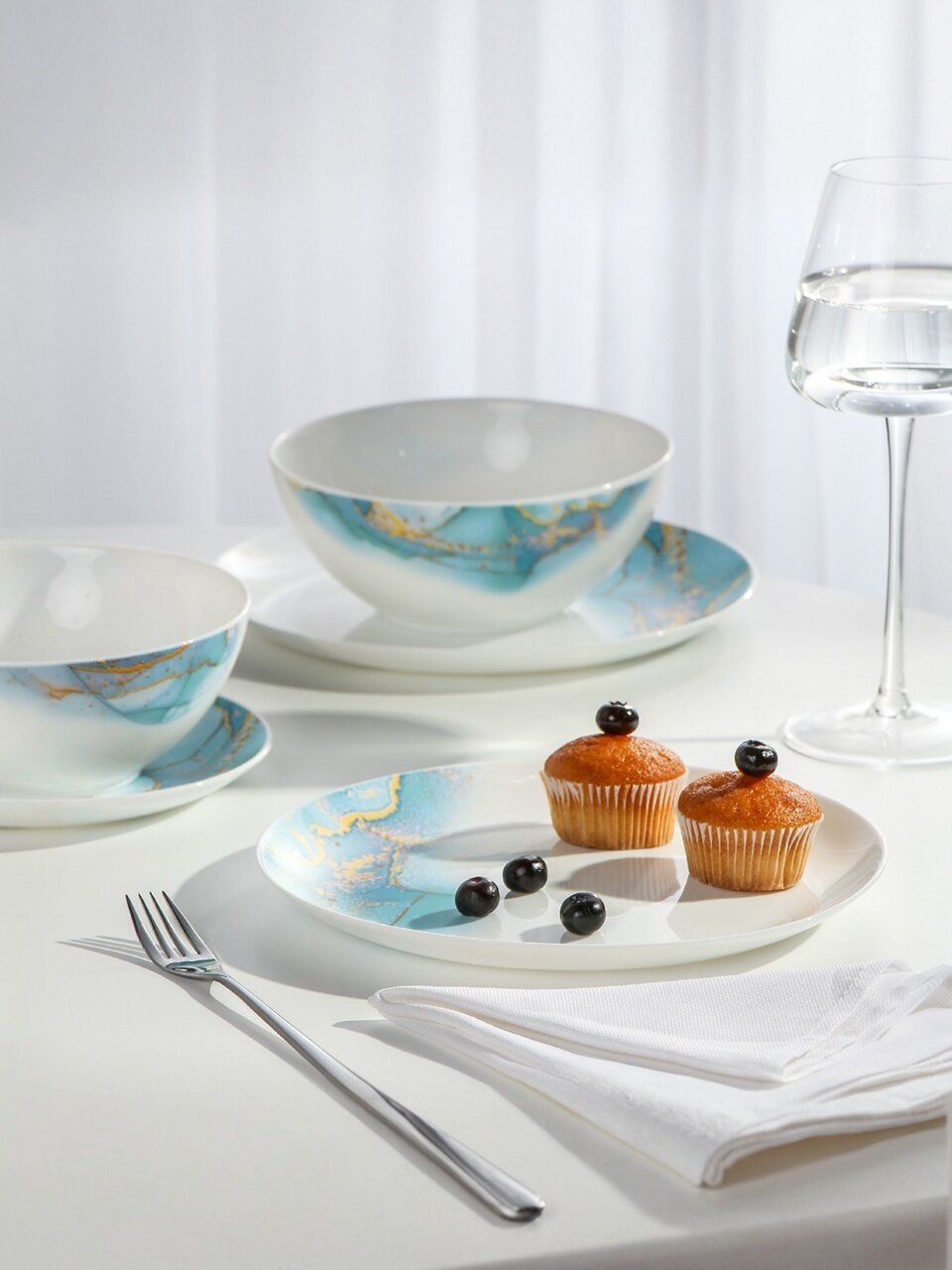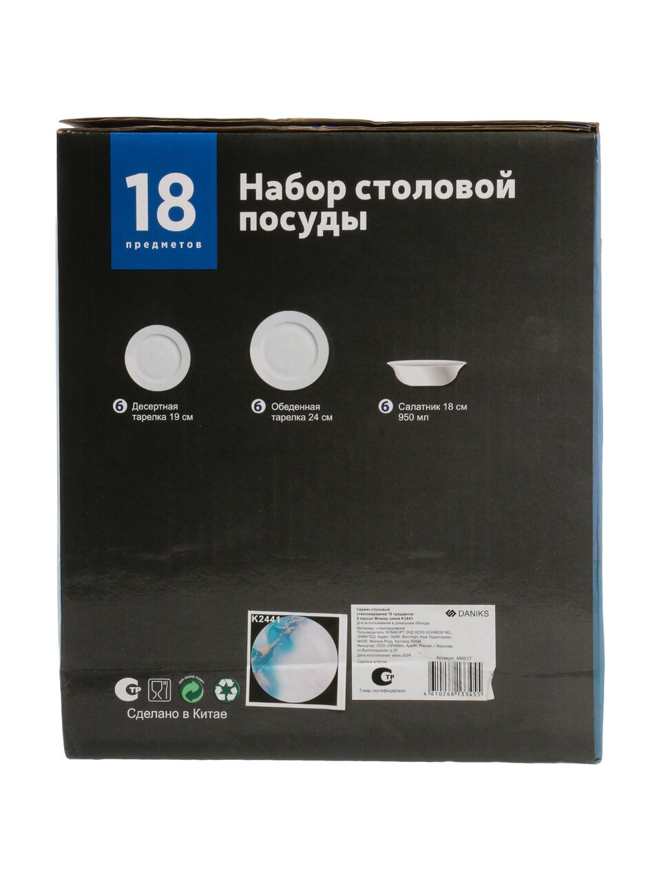 Столовый сервиз из стеклокерамики Daniks Флюид (18 предметов, 6 персон, синий) — стильное решение для сервировки, подходит для дома, дачи и ежедневного использования.
