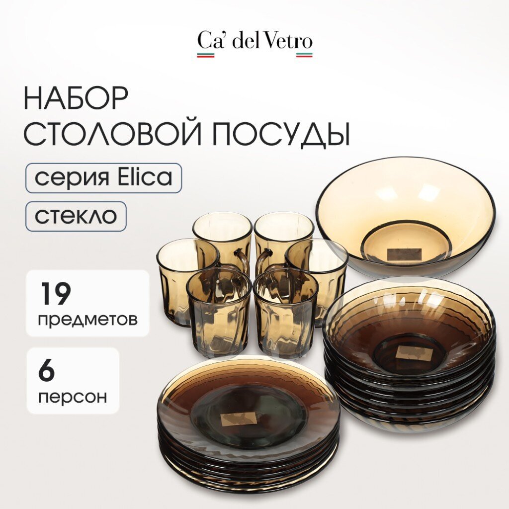 Вы можете приобрести «Сервиз столовый, стекло, 19 предметов, на 6 персон, Elica, 62104, дымчатый» и другие товары в нашем интернет-магазине по низким ценам и с бесплатным самовывозом.