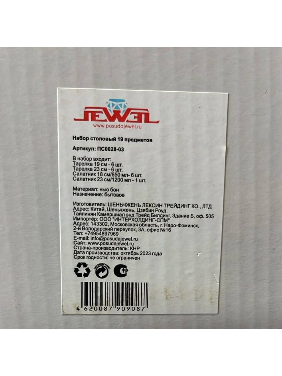 Сервиз столовый фарфор на 6 персон Jewel Софи (19 предметов): элегантность для вашего стола, идеальный выбор для дома и дачи, выгодная цена.