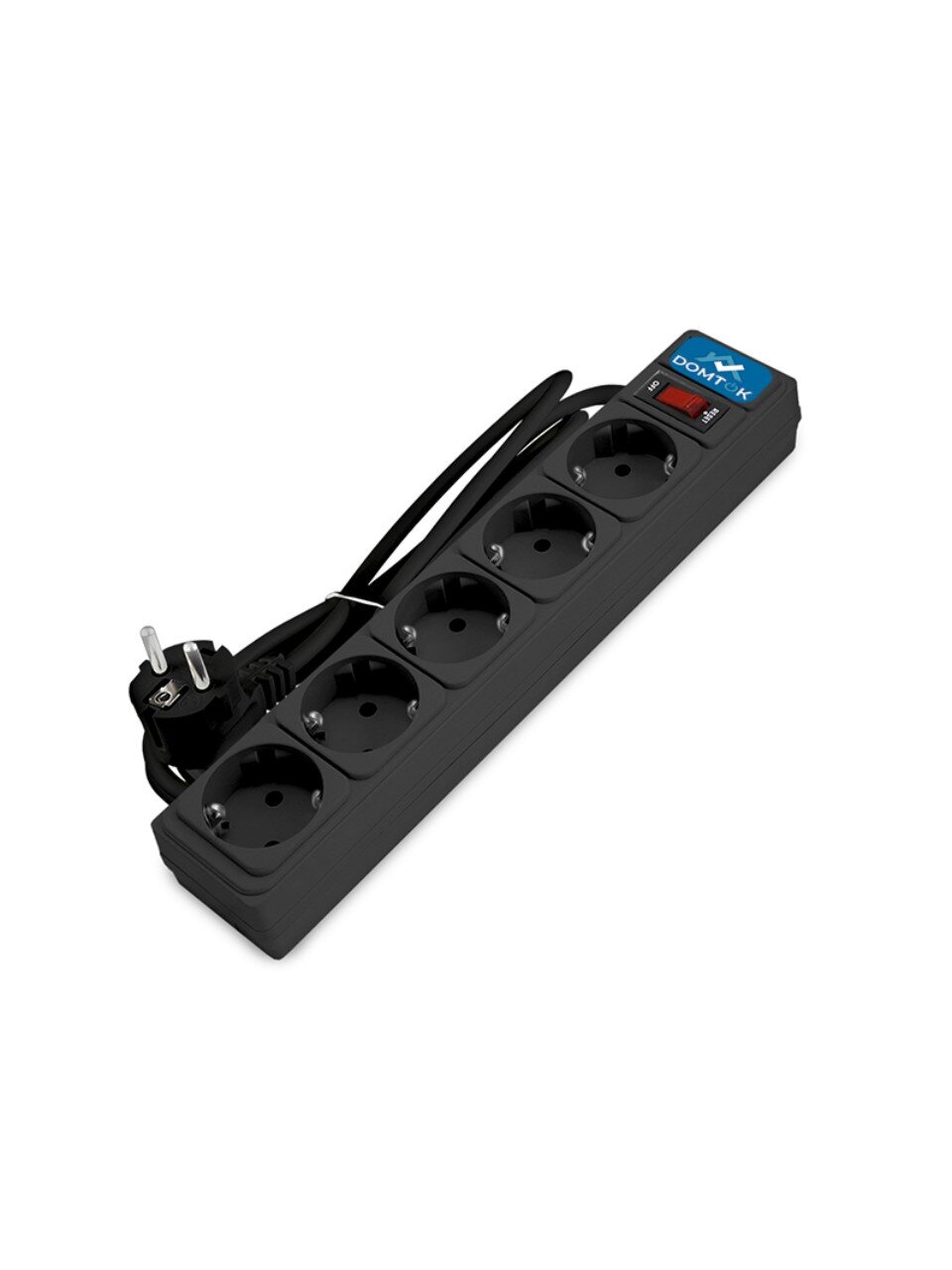 Сетевой фильтр 5 гнезд, 1.8 м, ПВС, 3х1 мм², с заземлением, 10 А, выключатель с индикацией, черный, Domtok, 2537