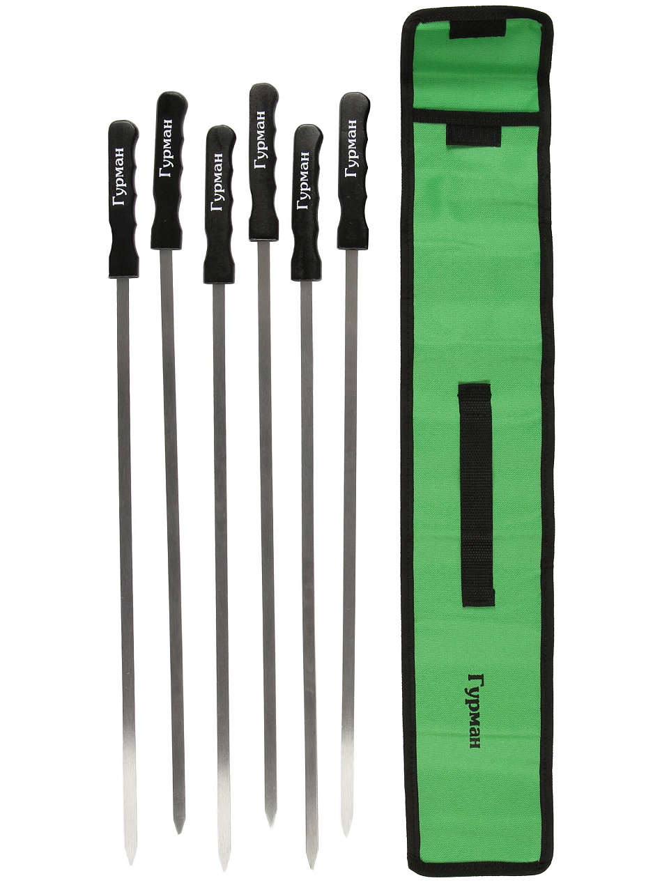 Вы можете приобрести «Шампур лезвие плоское, 6 шт, 600х10х2 мм, нержавеющая сталь, рукоятка дерево, Гурман, в чехле, CB2222» и другие товары в нашем интернет-магазине в Серпухове по низким ценам и с бесплатным самовывозом.