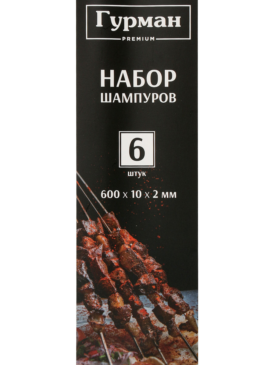 - Данный набор шампуров — идеальный вариант для тех, кто ценит отдых на природе и любит готовить вкусную еду на открытом огне. В комплекте 6 шампуров из нержавеющей стали с деревянными ручками, которые удобно лежат в руке и не скользят.