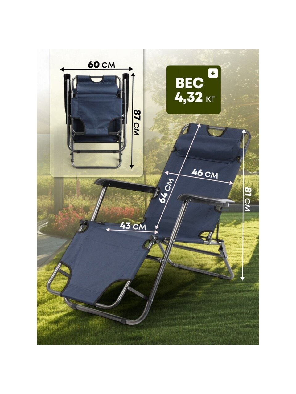 - Регулируемые по высоте подлокотники и съёмный подголовник гарантируют удобство и приятные ощущения во время отдыха.