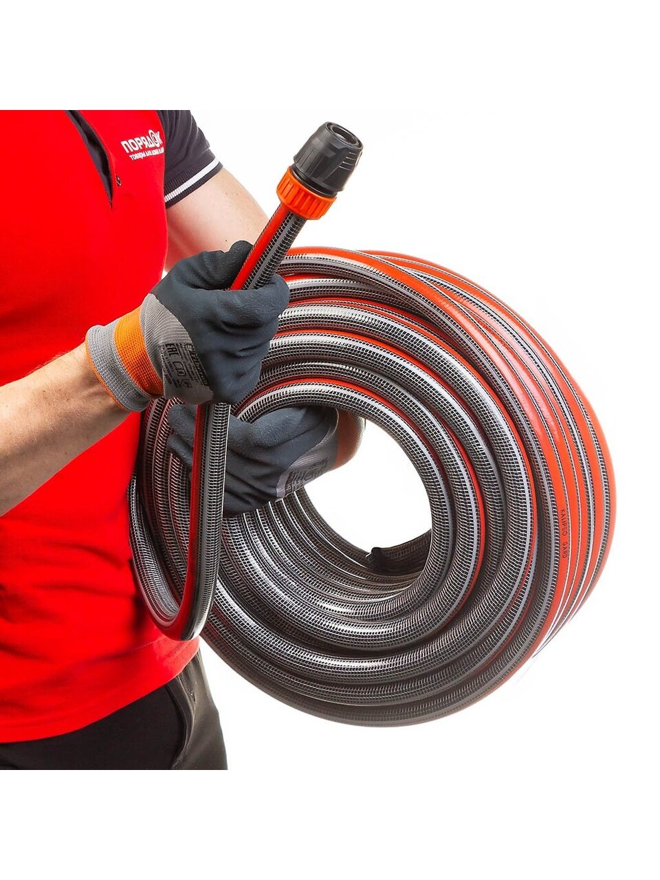 Благодаря армированию полиэфирной нитью и 6-слойной конструкции, шланг способен выдерживать давление до 21 атм, что делает его идеальным для использования в бытовых условиях. Антиторсионная технология предотвращает перекручивание, обеспечивая легкость в использовании и хранении. Всесезонная комплектация позволяет использовать шланг в любое время года, не опасаясь воздействия низких температур.