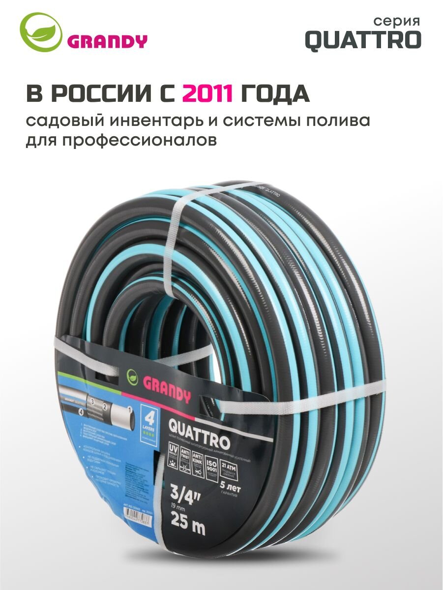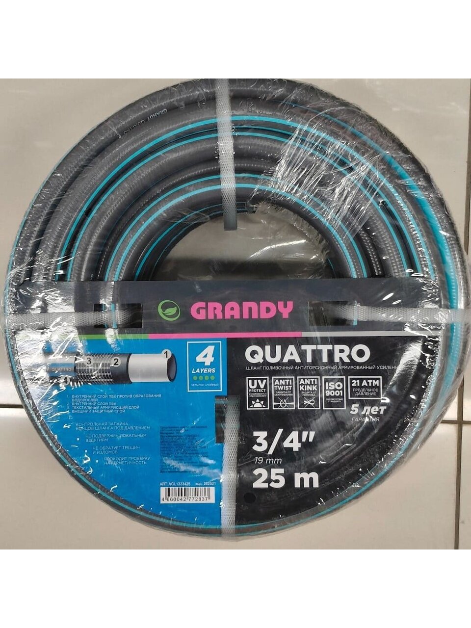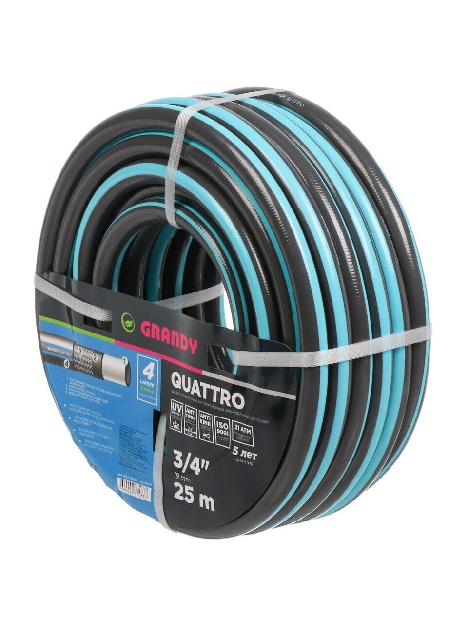 Вы можете приобрести «Шланг поливочный, 3/4 '', 19 мм, 21 атм, армированный, 25 м, 4 слоя, Grandy, Quattro, ПВХ, антиторсионный, всесезонный, AGL1333425» и другие товары в нашем интернет-магазине в Липецке по низким ценам и с бесплатным самовывозом.