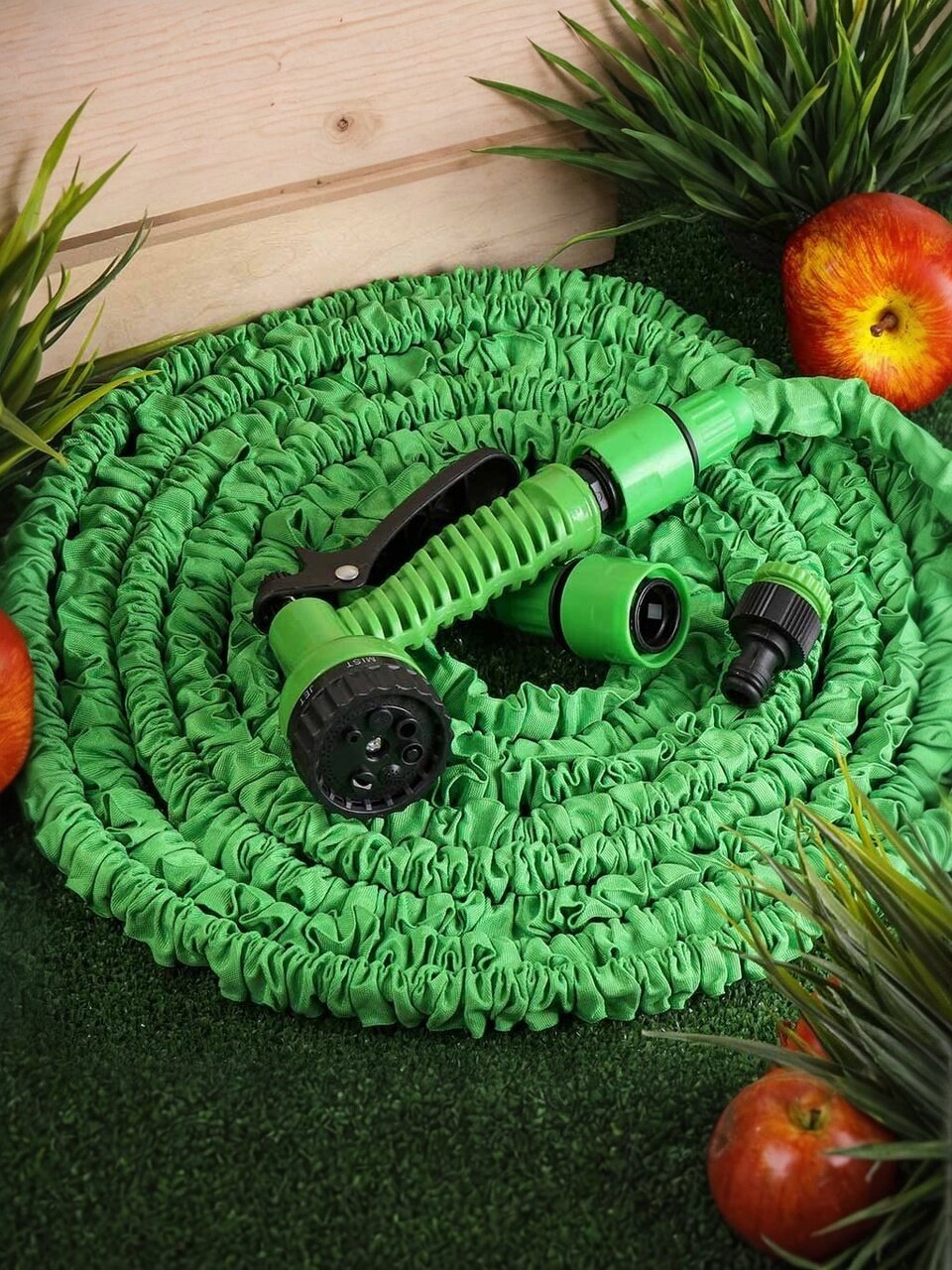 После окончания поливочных работ стрейч-шланг сжимается и приобретает свой первоначальный вид и размер.