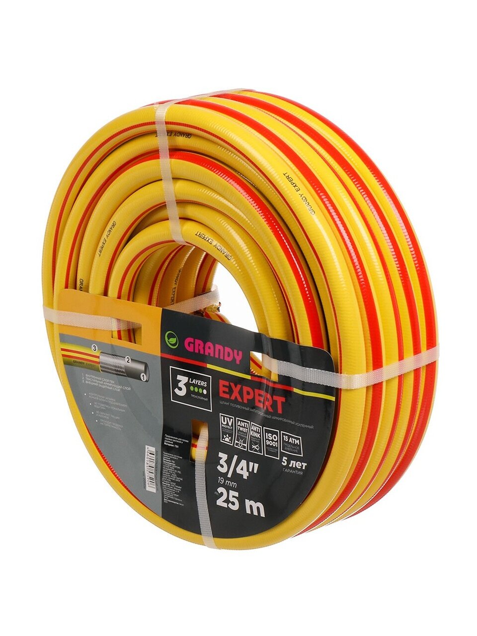 Вы можете приобрести «Шланг поливочный, 3/4 '', 19 мм, 15 атм, армированный, 25 м, 3 слоя, Grandy, Expert, ПВХ, антиторсионный» и другие товары в нашем интернет-магазине в Курске по низким ценам и с бесплатным самовывозом.