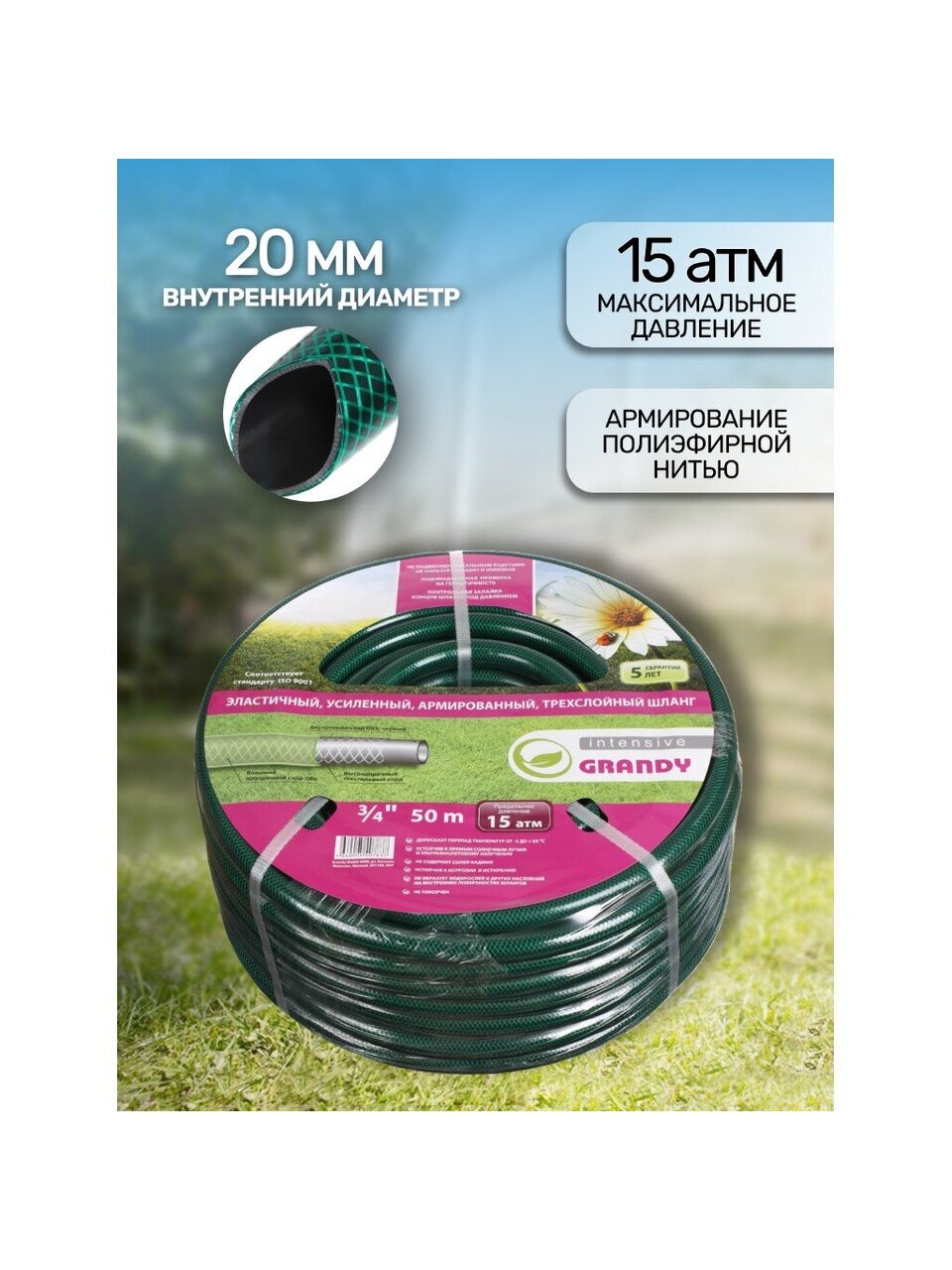 Вы можете приобрести «Шланг поливочный, 3/4 '', 20 мм, 15 атм, армированный, 50 м, 3 слоя, Grandy, Intensive, ПВХ, усиленный, AGL063450» и другие товары в нашем интернет-магазине в Астрахани по низким ценам и с бесплатным самовывозом.