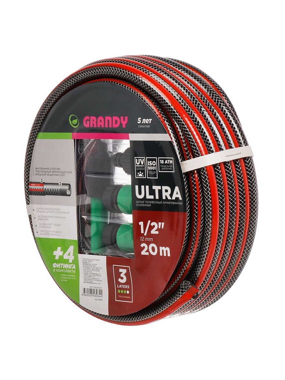 Вы можете приобрести «Шланг поливочный, 1/2 '', 12 мм, 18 атм, армированный, 20 м, 3 слоя, Grandy, Ultra+, ПВХ, с фитингами» и другие товары в нашем интернет-магазине в Обнинске по низким ценам и с бесплатным самовывозом.