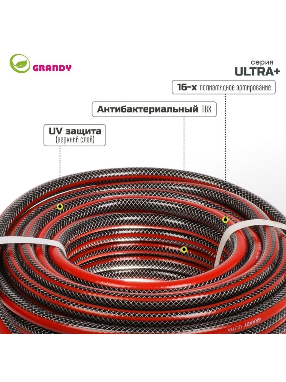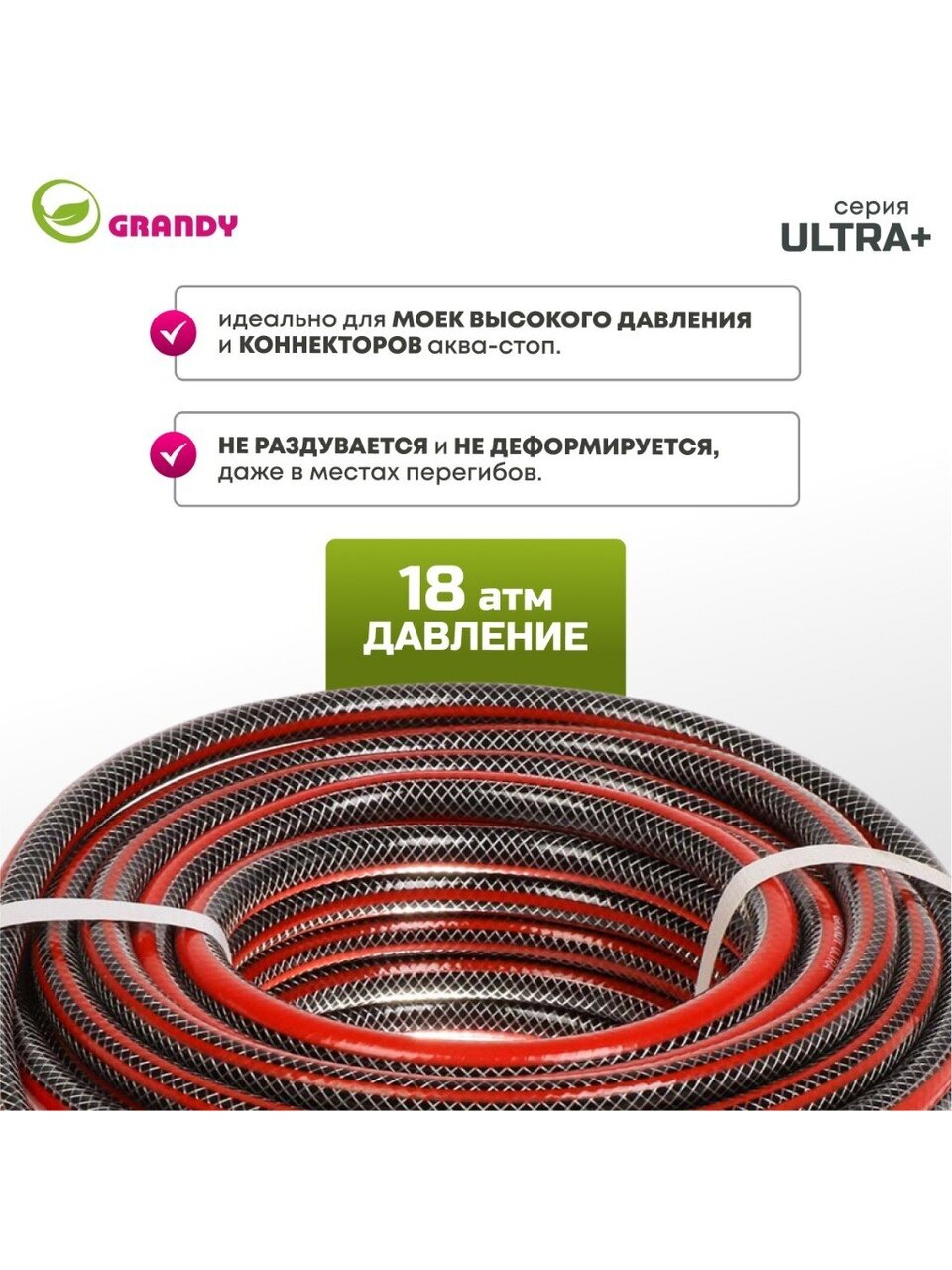 Шланг поливочный армированный трехслойный Grandy Ultra+ не подвержен локальным вздутиям, не образует трещин и изломов. Проверен на герметичность, концы шланга запаяны под давлением.