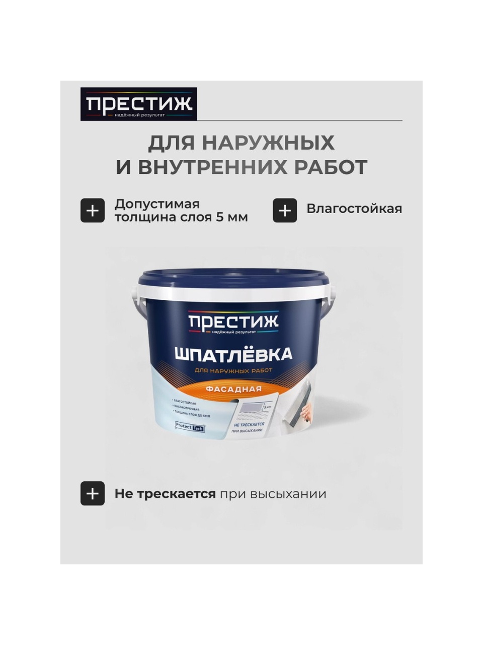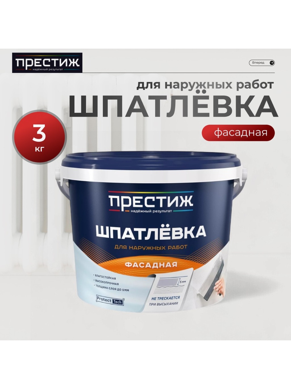 Вы можете приобрести «Шпатлевка Престиж, акриловая, универсальная, фасадная, для наружных работ, 3 кг» и другие товары в нашем интернет-магазине в Белгороде по низким ценам и с бесплатным самовывозом.