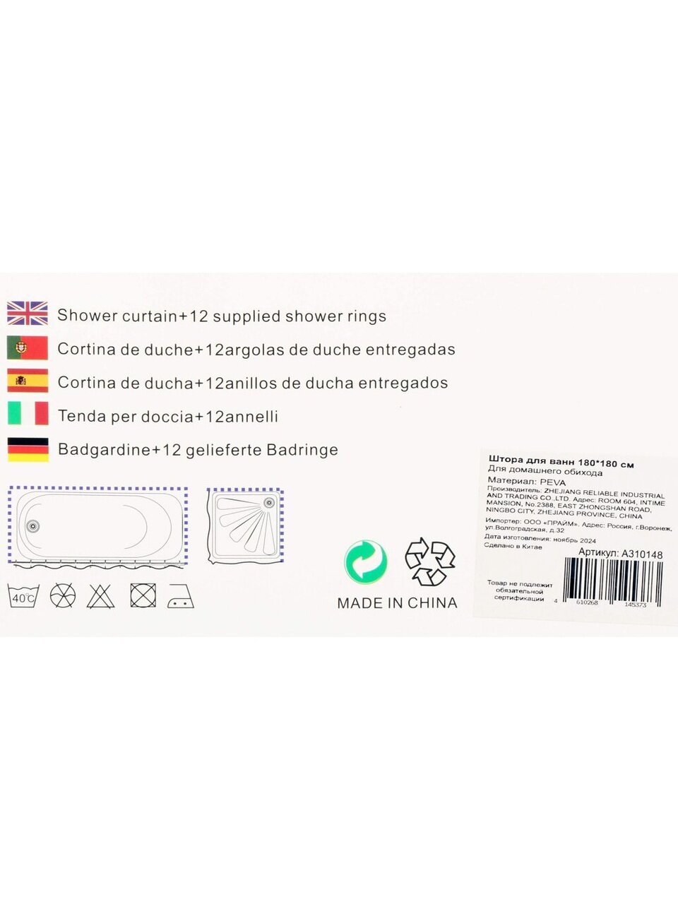 Вы можете приобрести «Штора для ванн 180х180 см, Peva, Naonao, голубой принт, A310148» и другие товары в нашем интернет-магазине в Смоленске по низким ценам и с бесплатным самовывозом.