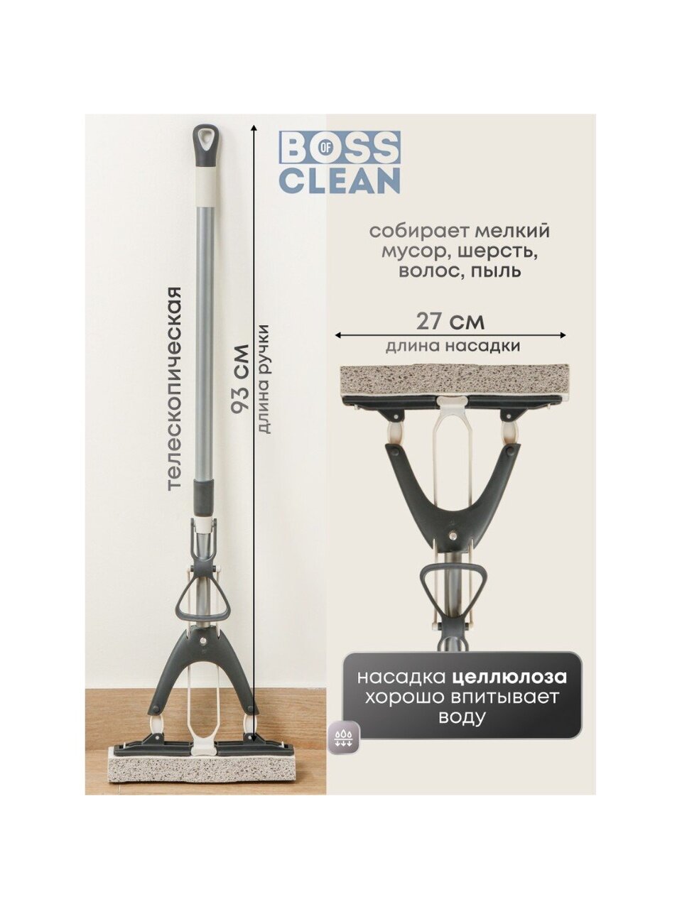 Швабра для пола Bossclean с насадкой из целлюлозы - идеальное решение для эффективной уборки Вашего дома. Этот универсальный инвентарь станет надежным помощником в борьбе с грязью и пылью на полу, а также на других поверхностях, таких как окна, плитка, потолок и стены.