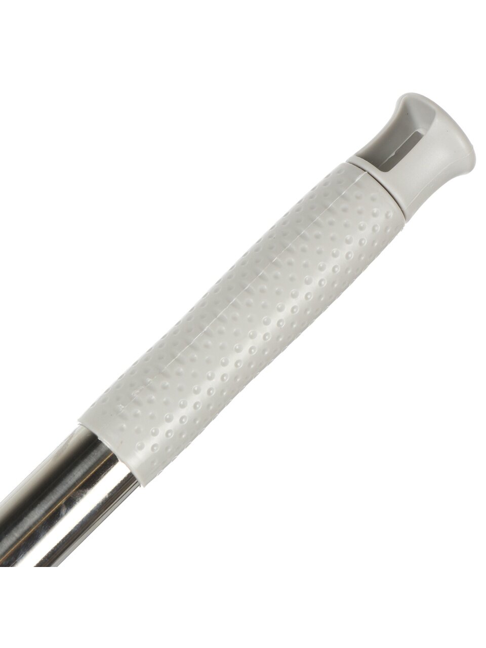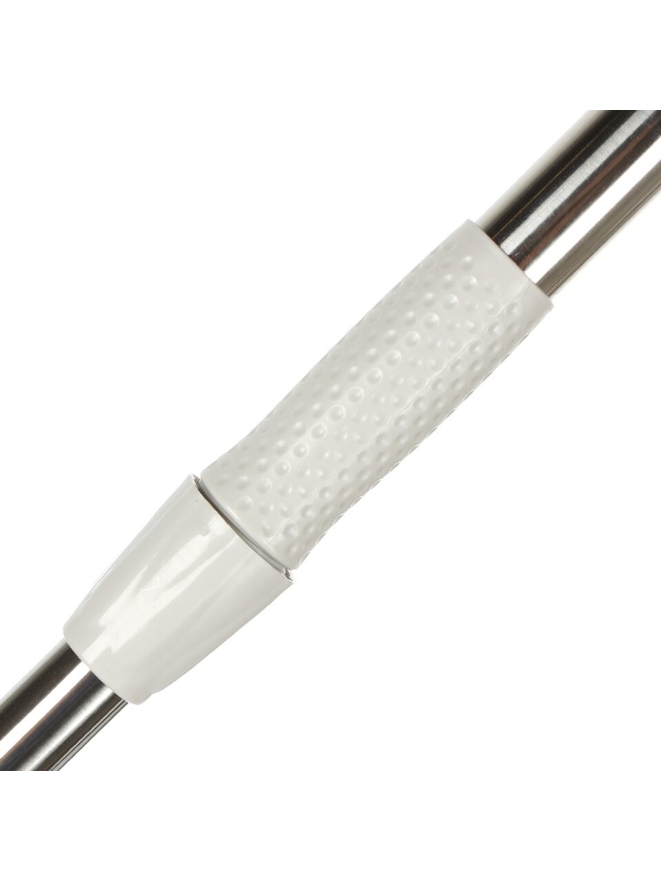Ручка телескопическая, максимальная длина — 125 см. Материалы: нержавеющая сталь, полипропилен. Это удобно для уборки полов, потолков и стен.