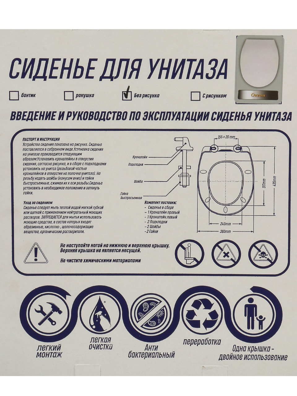 Многих покупателей интересует, подходит ли данная модель для стандартных чаш унитазов. Благодаря продуманным габаритам, сиденье легко адаптируется под большинство санфаянсовых изделий российского и импортного производства. Если вы ищете, чем отличается качественное сиденье от дешевого пластика, обратите внимание на плотность материала и надежность фурнитуры: Океан Lux сохраняет эстетичный белый цвет даже при интенсивной эксплуатации и регулярной санитарной обработке.
