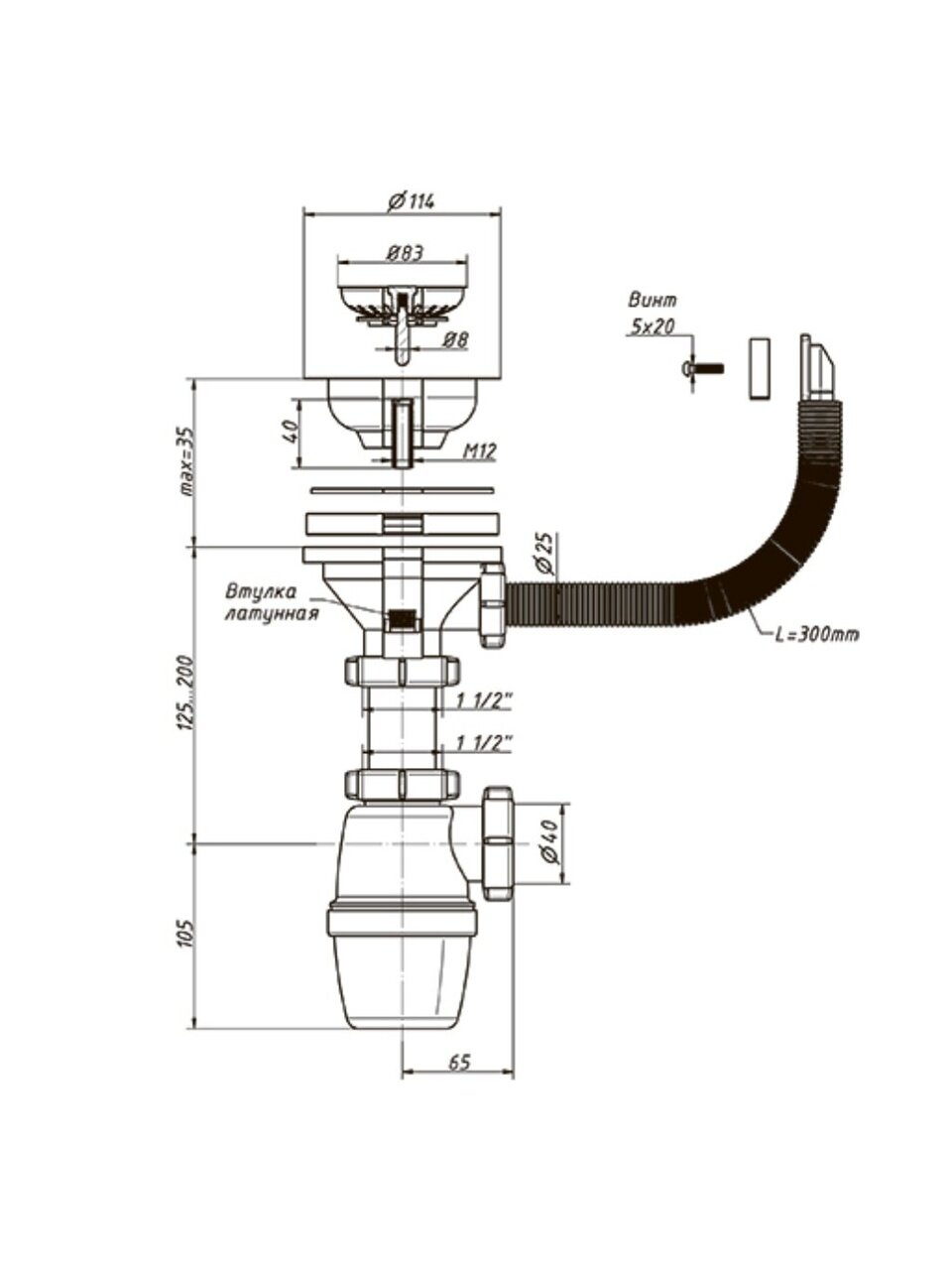 - Прокладка под перелив мойки прямая: 1