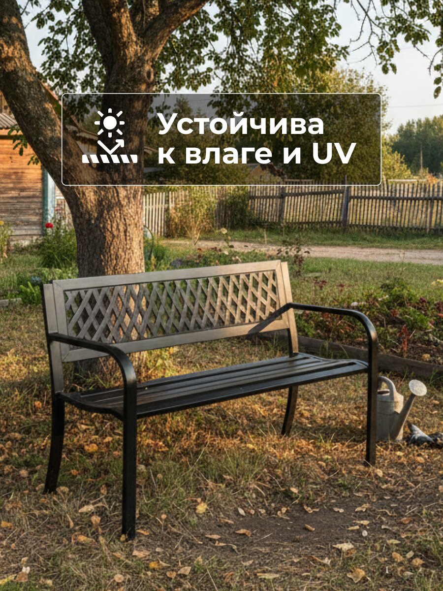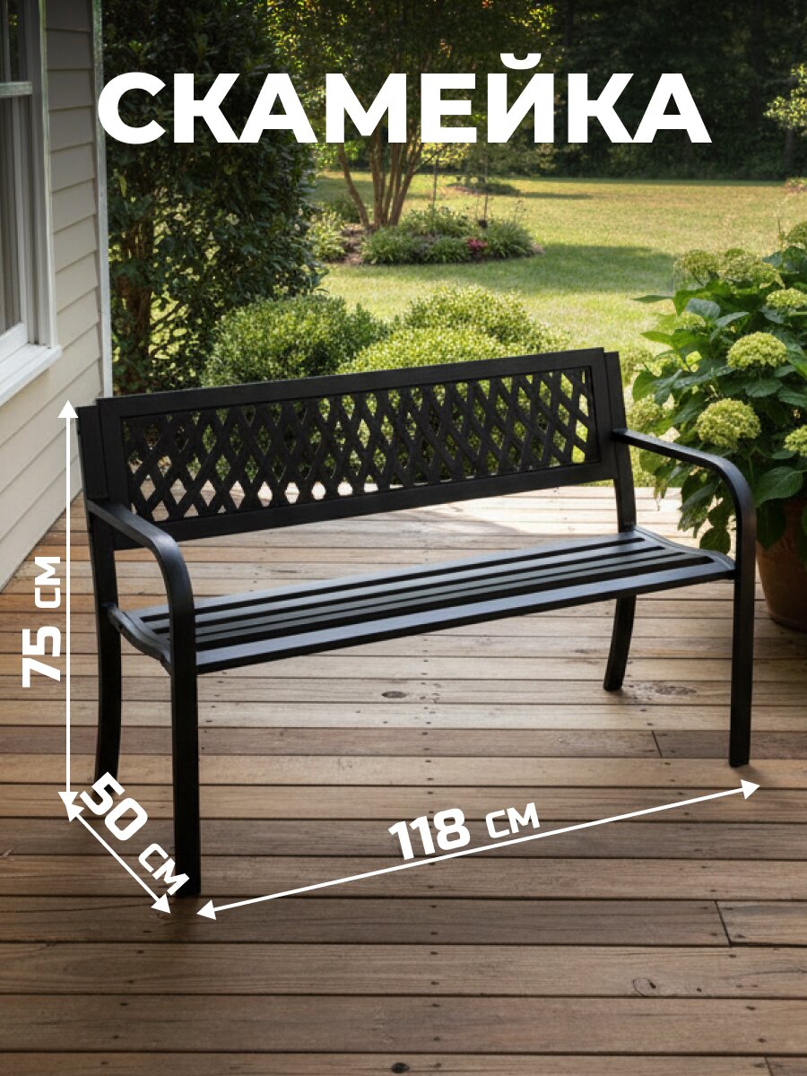 - универсальный размер — длина 118 см, глубина 50 см, высота 75 см — оптимально для размещения на террасе, в саду или на дачном участке.