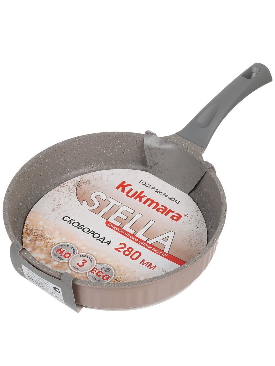 Сковорода Kukmara Stella 28 см из литого алюминия с гранитным антипригарным покрытием: готовьте мясо, рыбу и омлет без пригорания, экономьте время и силы.