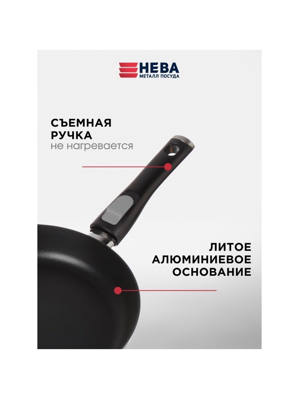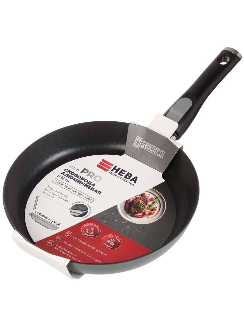 Сковорода литой алюминий, 26 см, антипригарное покрытие, Нева Металл Посуда, Pro, съемная ручка