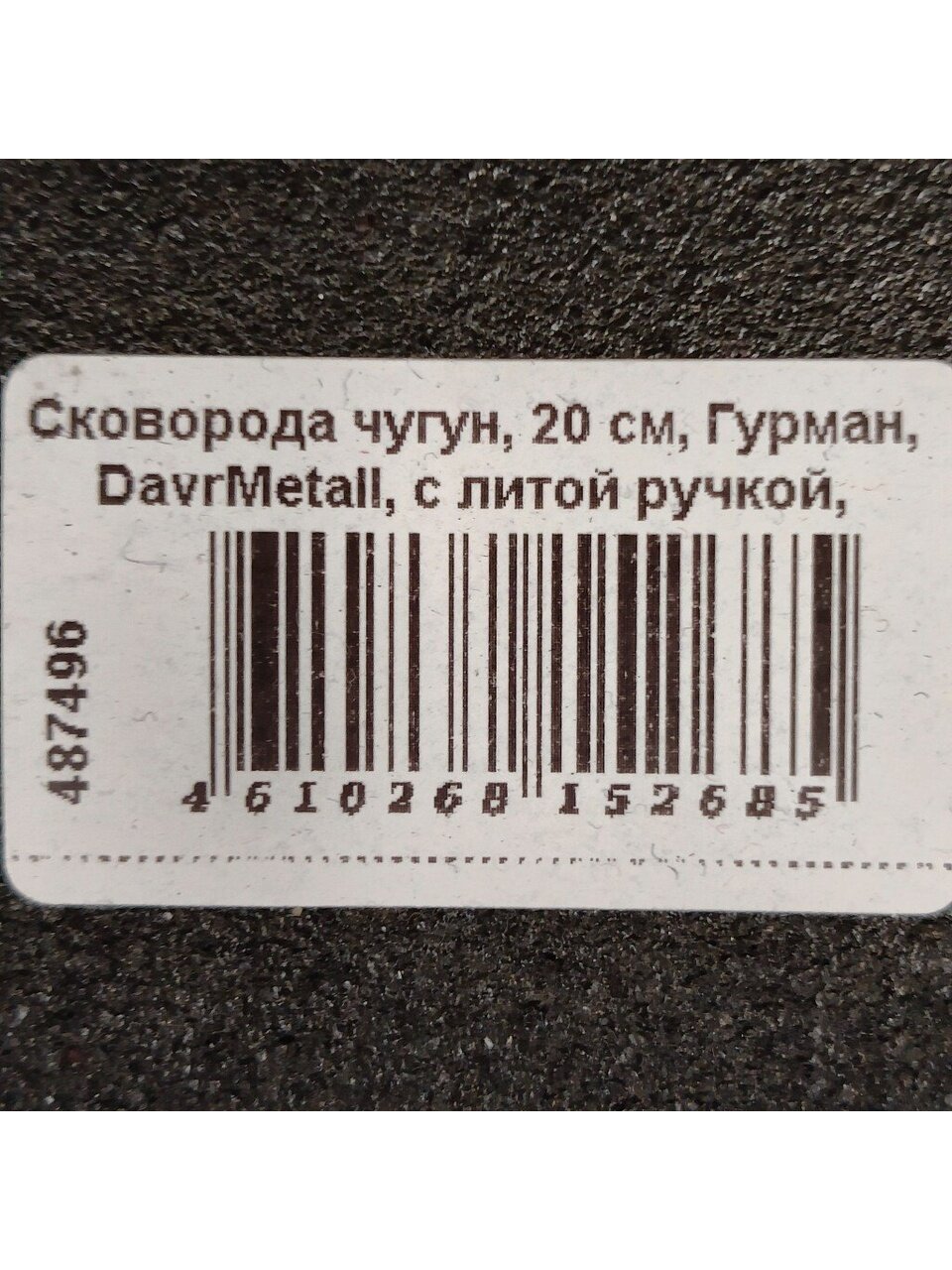 Вы можете приобрести «Сковорода чугун, 20 см, Гурман, DavrMetall, с литой ручкой, индукция» и другие товары в нашем интернет-магазине в Обнинске по низким ценам и с бесплатным самовывозом.