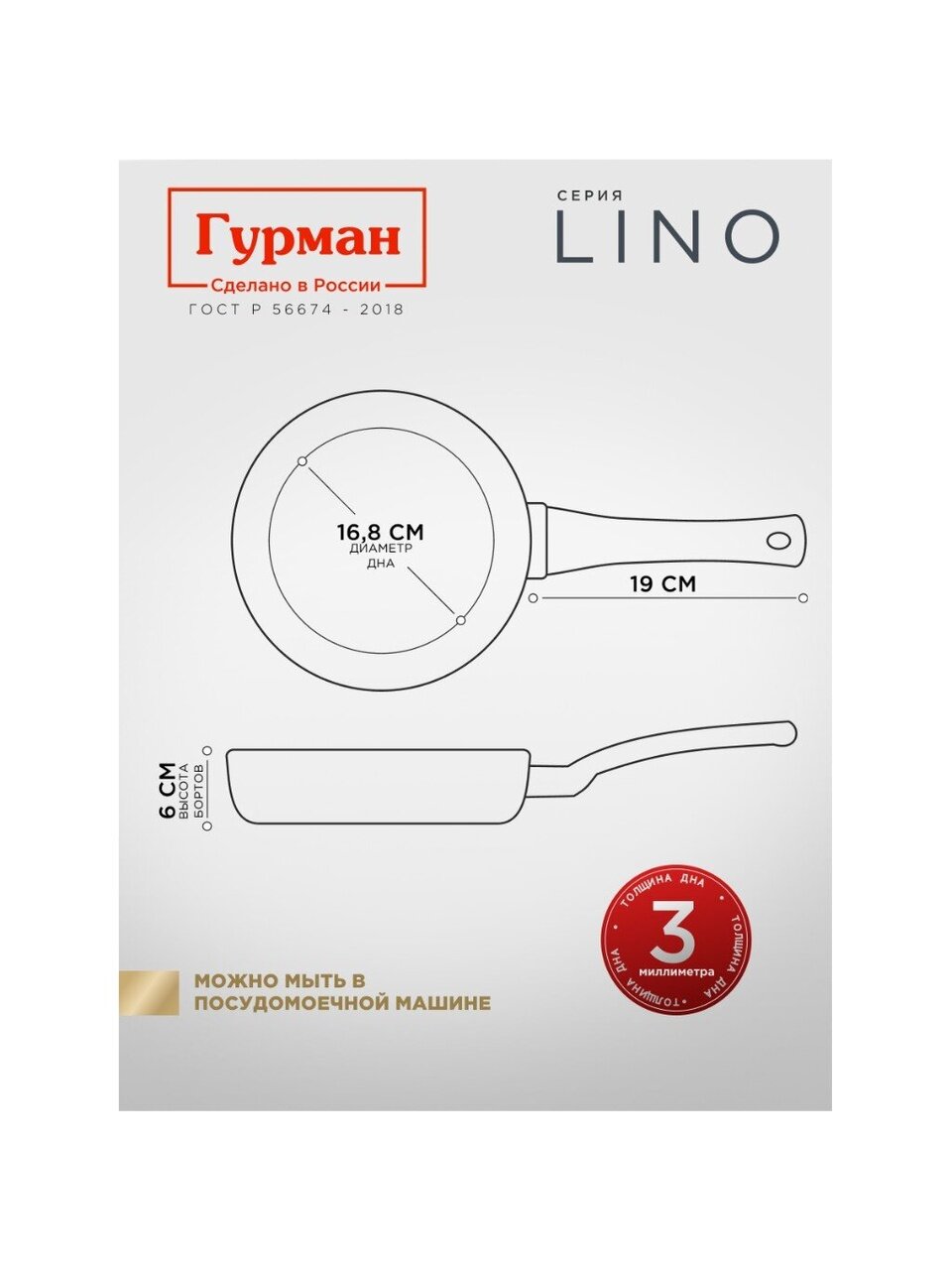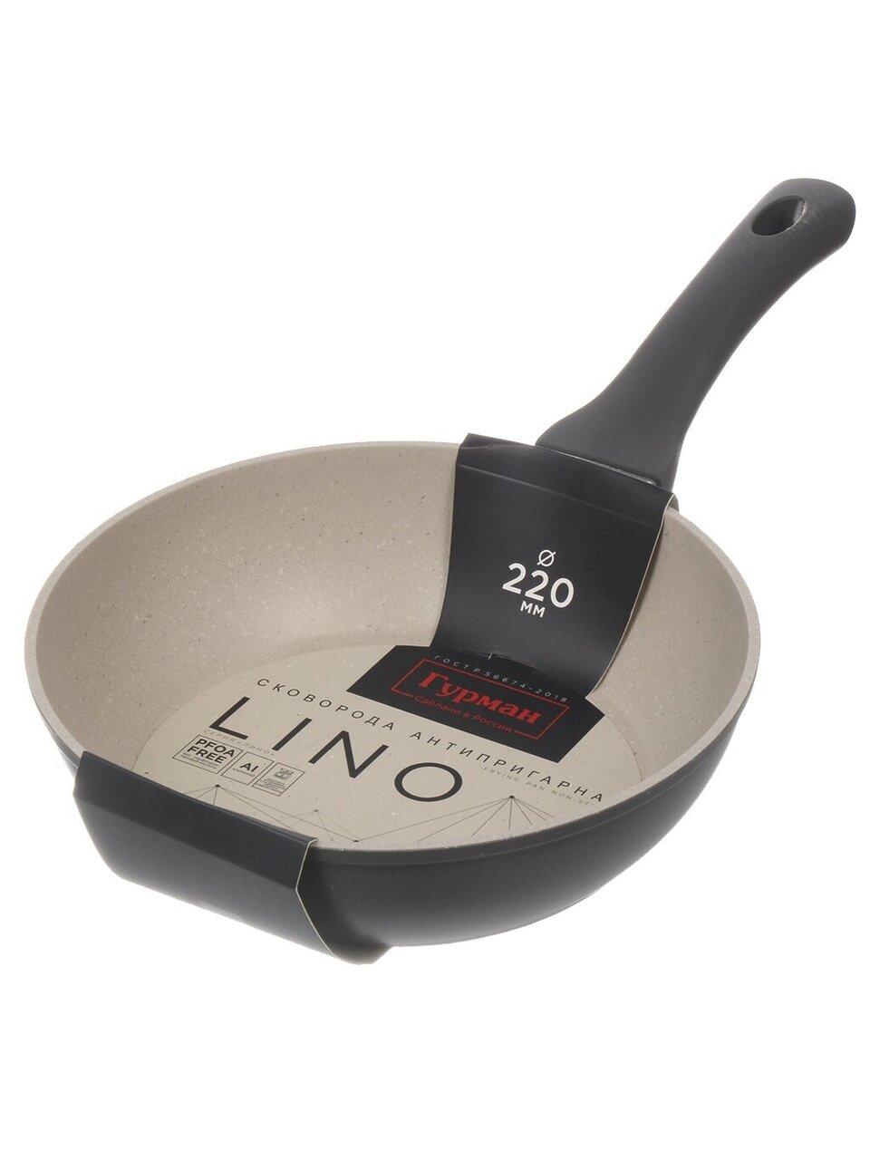 Сковорода литая алюминиевая 22 см Гурман Lino — идеальный выбор для индукции: антипригарное покрытие PFLUON, универсальный диаметр, 3 года гарантии.
