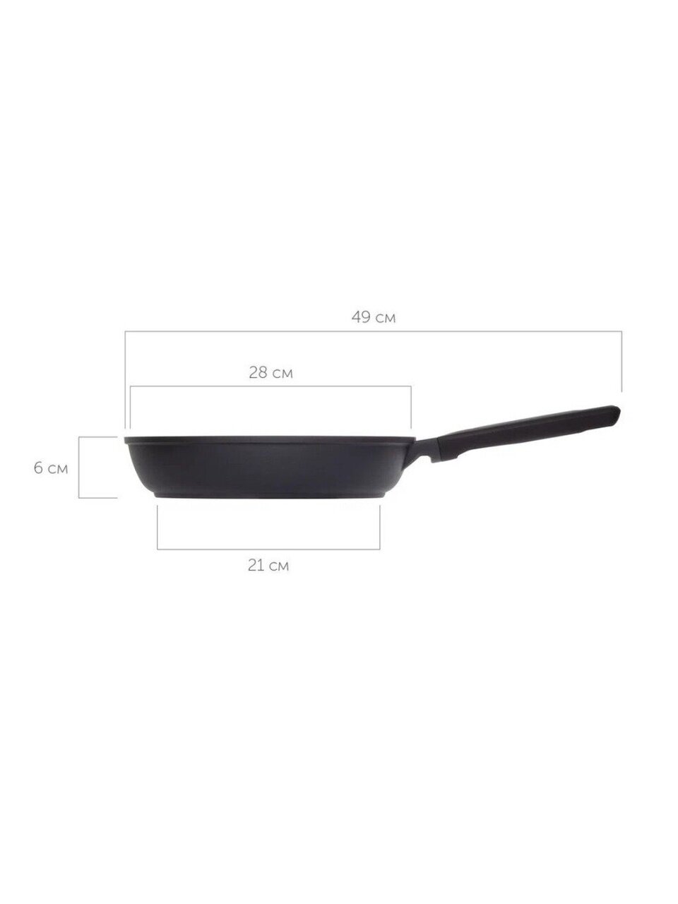 Диаметр дна составляет 21 см, высота борта — 60 мм, что идеально для жарки, тушения и приготовления блюд с соусом.