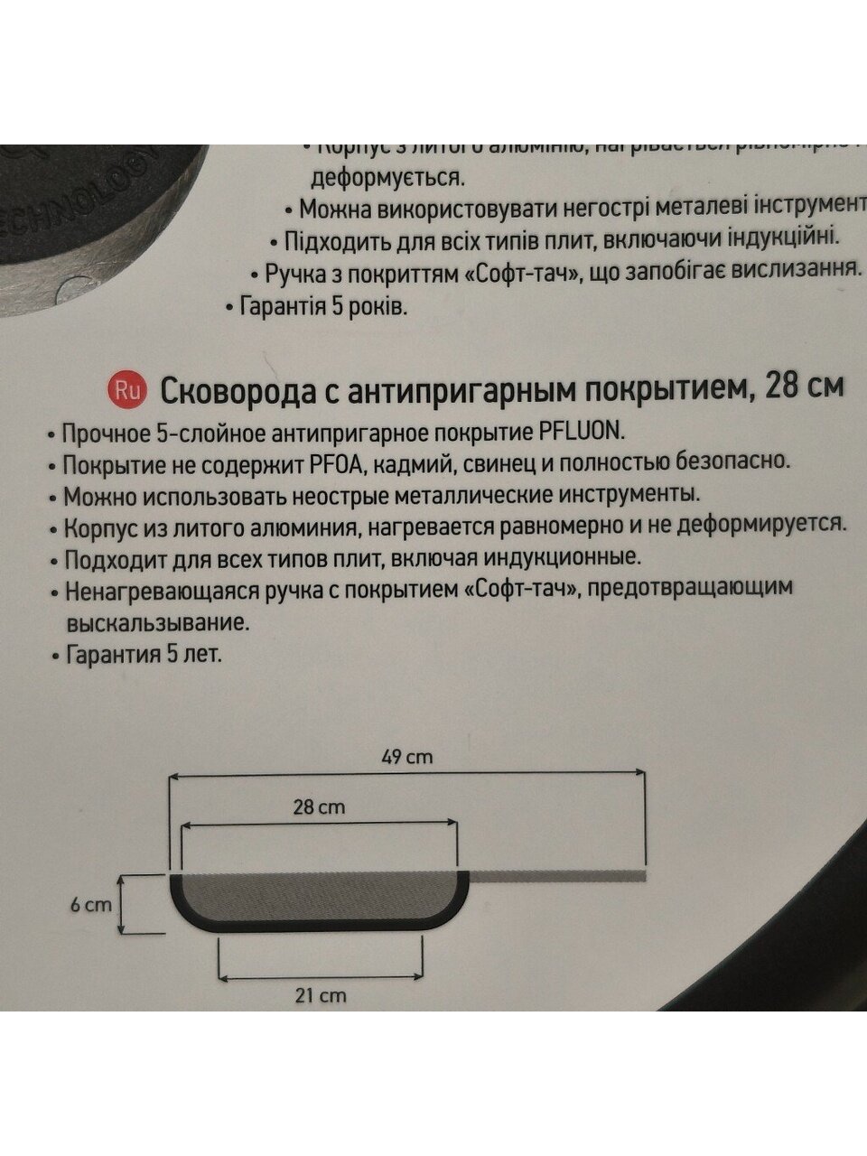 - Большой диаметр 28 см, литой алюминий 4 мм, толстое дно 5,5 мм — равномерный нагрев, не деформируется, срок службы 5 лет