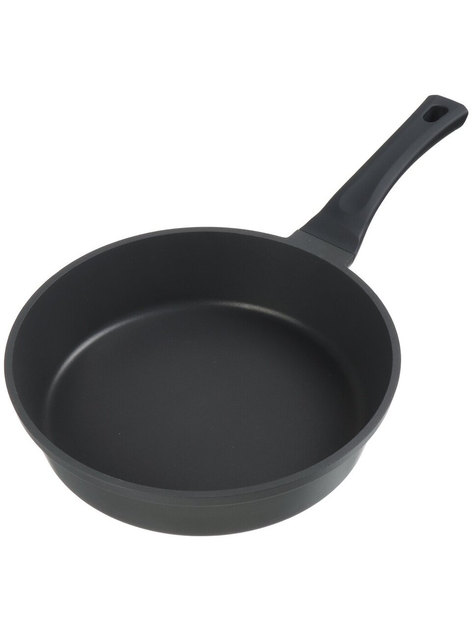 Сковорода имеет диаметр 28 см, высоту борта 6,5 см, толщину дна 4 мм и стенок 3 мм. Это оптимально для жарки, тушения и приготовления блюд на семью.