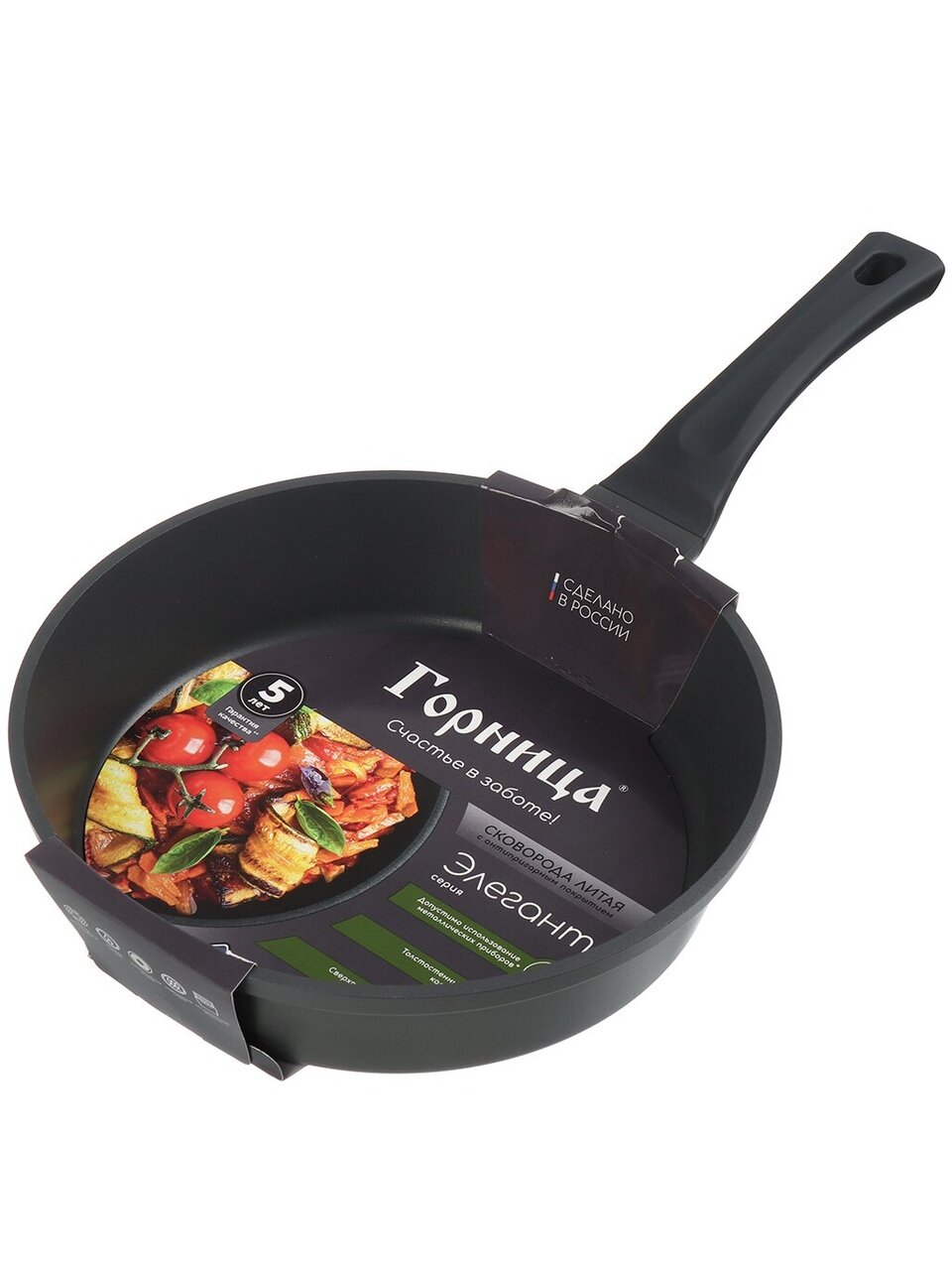 Сковорода Горница Элегант — универсальный выбор для дома, дачи или в подарок. Она подойдет для приготовления мяса, курицы, рыбы, овощей. 5 лет гарантии производителя — уверенность в долговечности. Закажите сковороду онлайн с быстрой доставкой и начните готовить вкусно уже завтра.