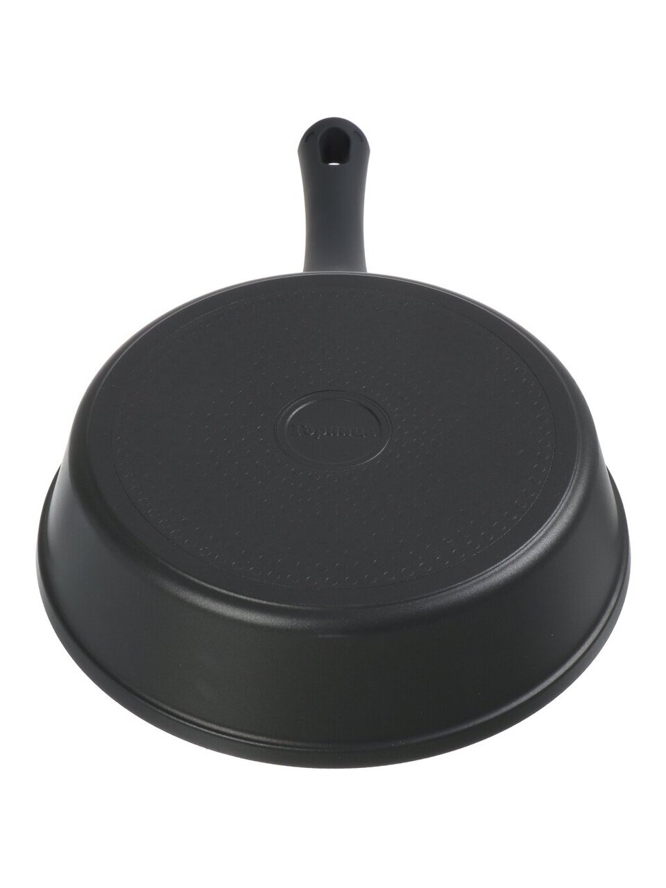 - Толстое дно 4 мм и оптимальный диаметр 28 см — равномерный нагрев, вместимость для семьи или гостей