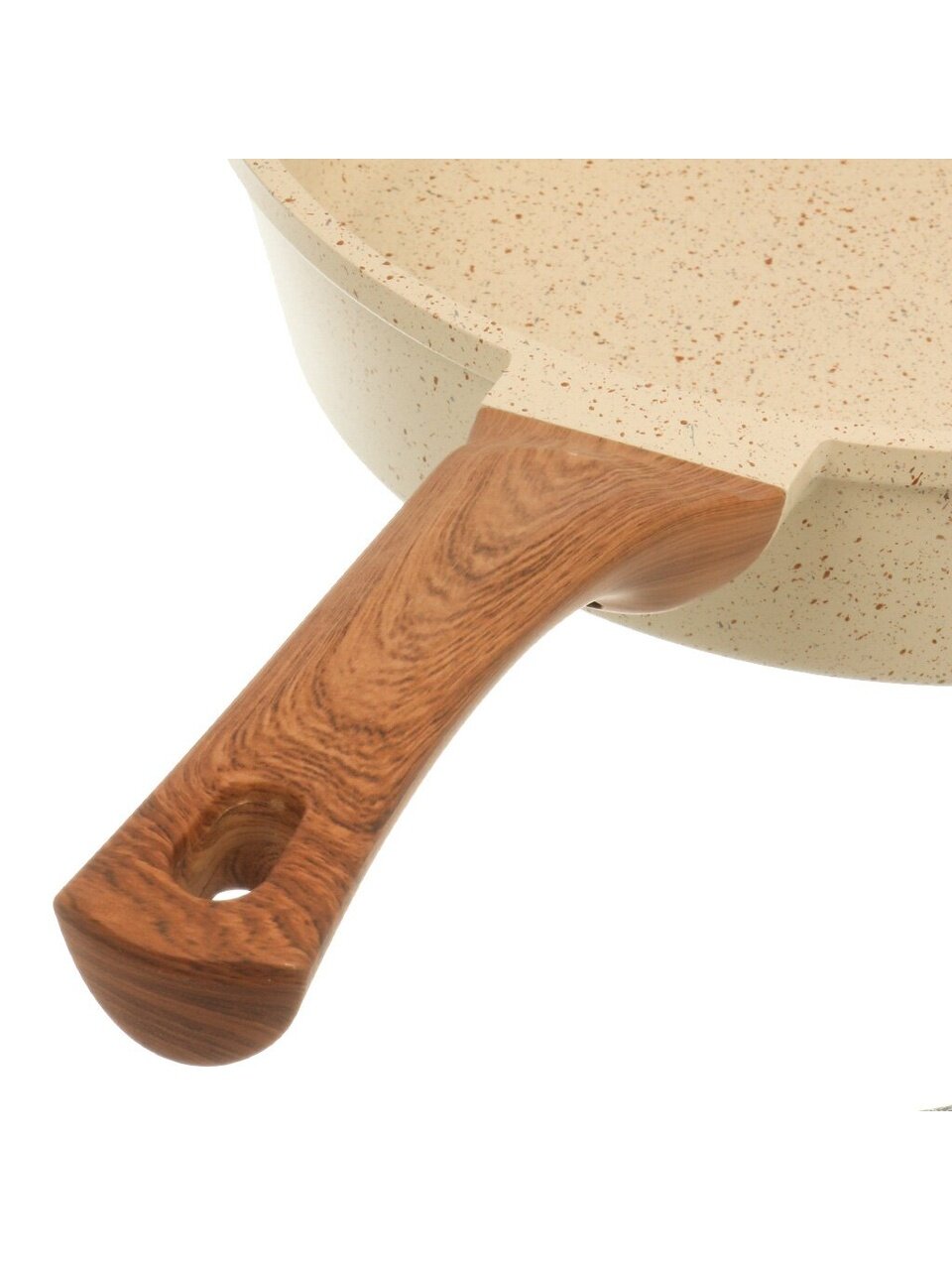 Гранитное покрытие устойчиво к царапинам, не впитывает запахи и позволяет готовить с минимальным количеством масла. Легко моется, в том числе в посудомоечной машине.