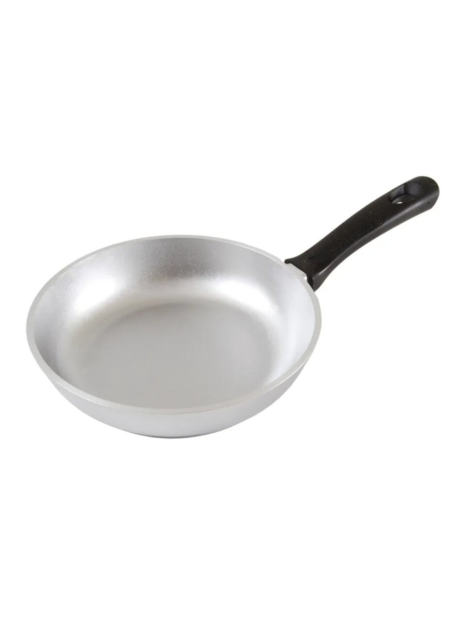В отличие от антипригарных аналогов, эта модель не содержит покрытия, что исключает появление царапин и продлевает срок службы. Если вы ищете, чем отличается литая алюминиевая сковорода от обычной — она прочнее, не деформируется и идеально подходит для обжарки на сильном огне. Отсутствие деревянной и съёмной ручки упрощает хранение и минимизирует риск поломок. Не рекомендуется для индукционных плит и мытья в посудомоечной машине, но ручная мойка не требует усилий благодаря гладкой поверхности.