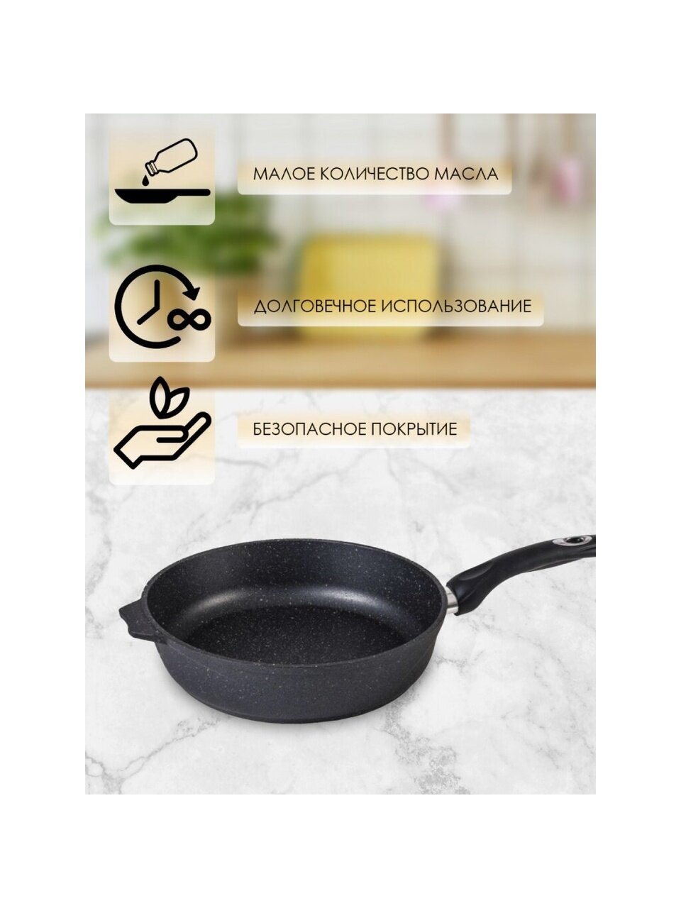 Сковорода Мечта Гранит black 28 см — антипригарное решение для здорового питания: литой алюминий, гранитное покрытие, долговечность и удобство каждый день.