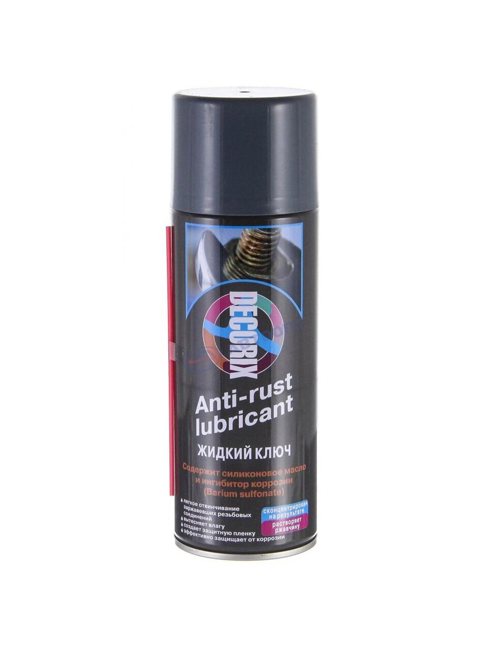 Жидкий ключ Decorix облегчает демонтаж заржавевших резьбовых соединений, прикипевших болтов и гаек, защищает от коррозии и окисления, смазывает различные механизмы, дверные петли, вытесняет влагу с металлических поверхностей и поверхности проводов.