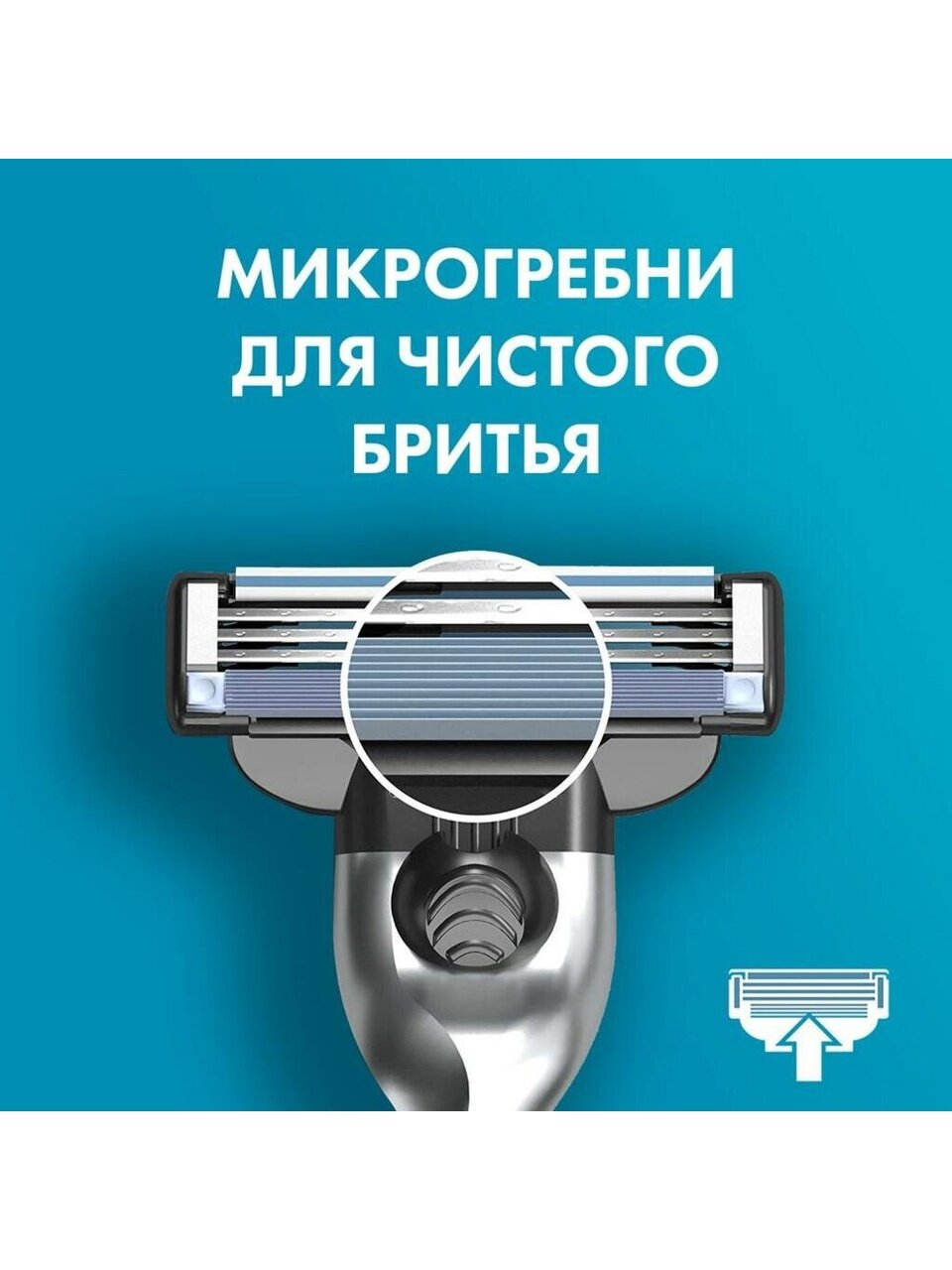 - Микрогребни помогают направлять волоски точно к лезвиям для гладкого бритья.