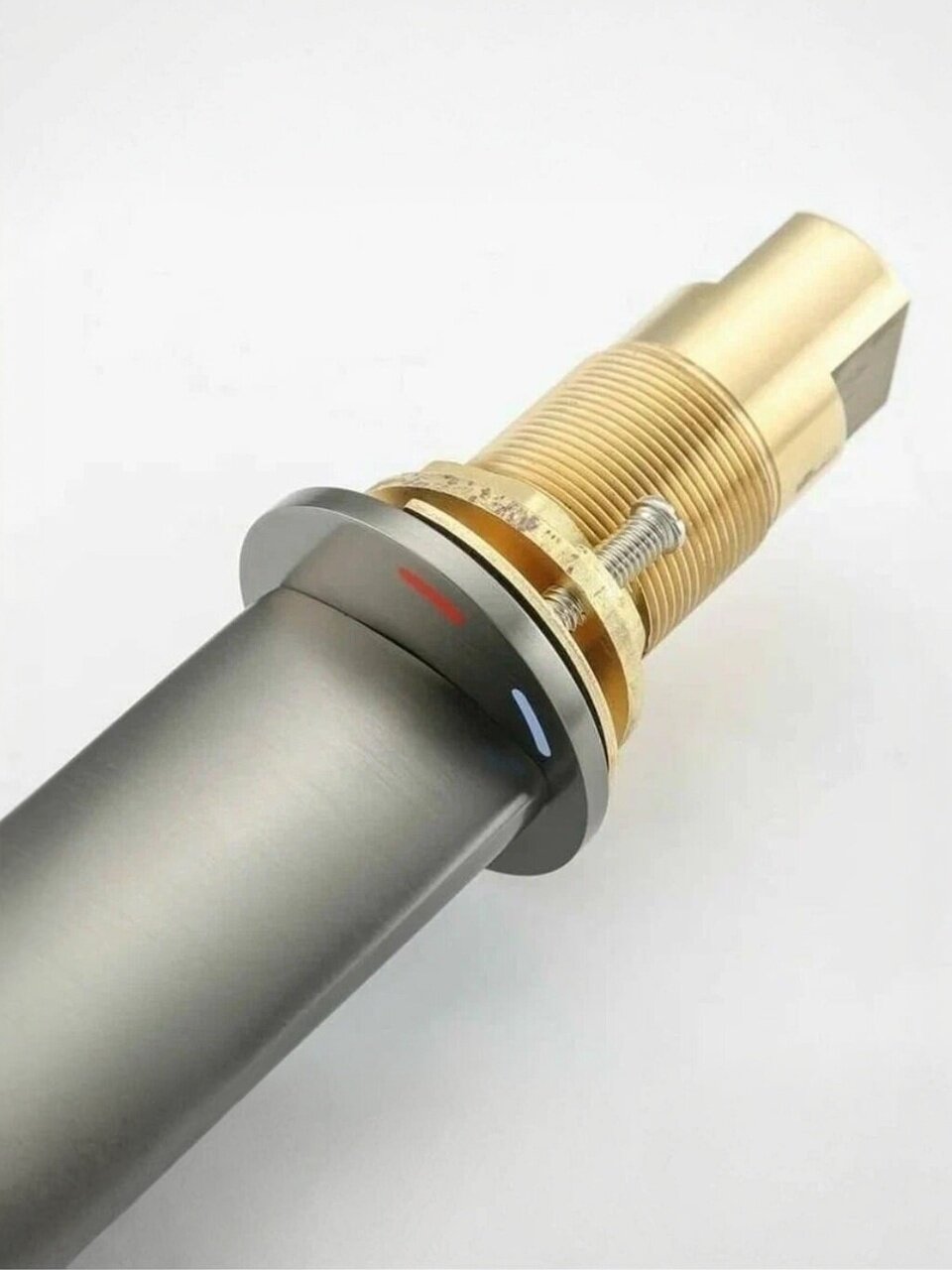 - Латунный корпус и керамический картридж: срок службы до 10 лет, устойчивость к коррозии, серебристый глянец сохраняет блеск