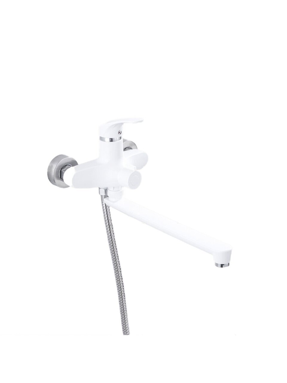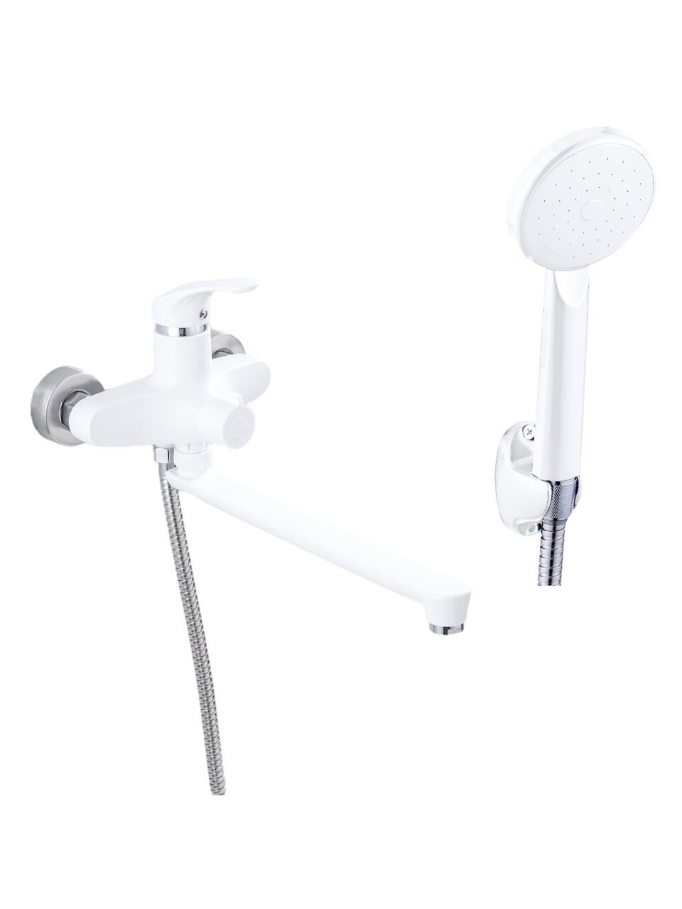 Смеситель для ванны Эверест B22-033: долговечный пластиковый корпус, керамический картридж, длинный поворотный излив 32 см — оптимальное решение для комфортного душа и экономии.