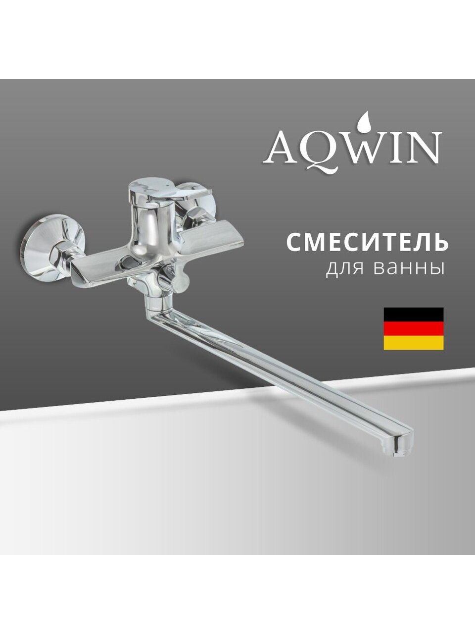 Смеситель для ванны Aqwin A22292: долговечный хром, плавный рычажный механизм и универсальный поворотный излив 35 см — для вашего комфорта каждый день.
