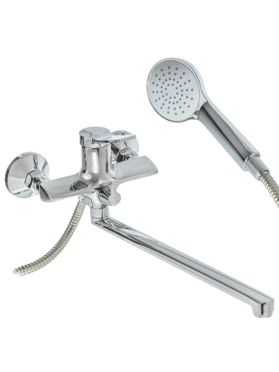 Поворотный длинный излив удобен для наполнения ванны, мытья головы или уборки — подходит для стандартных и просторных ванн, а также для совмещенных санузлов.