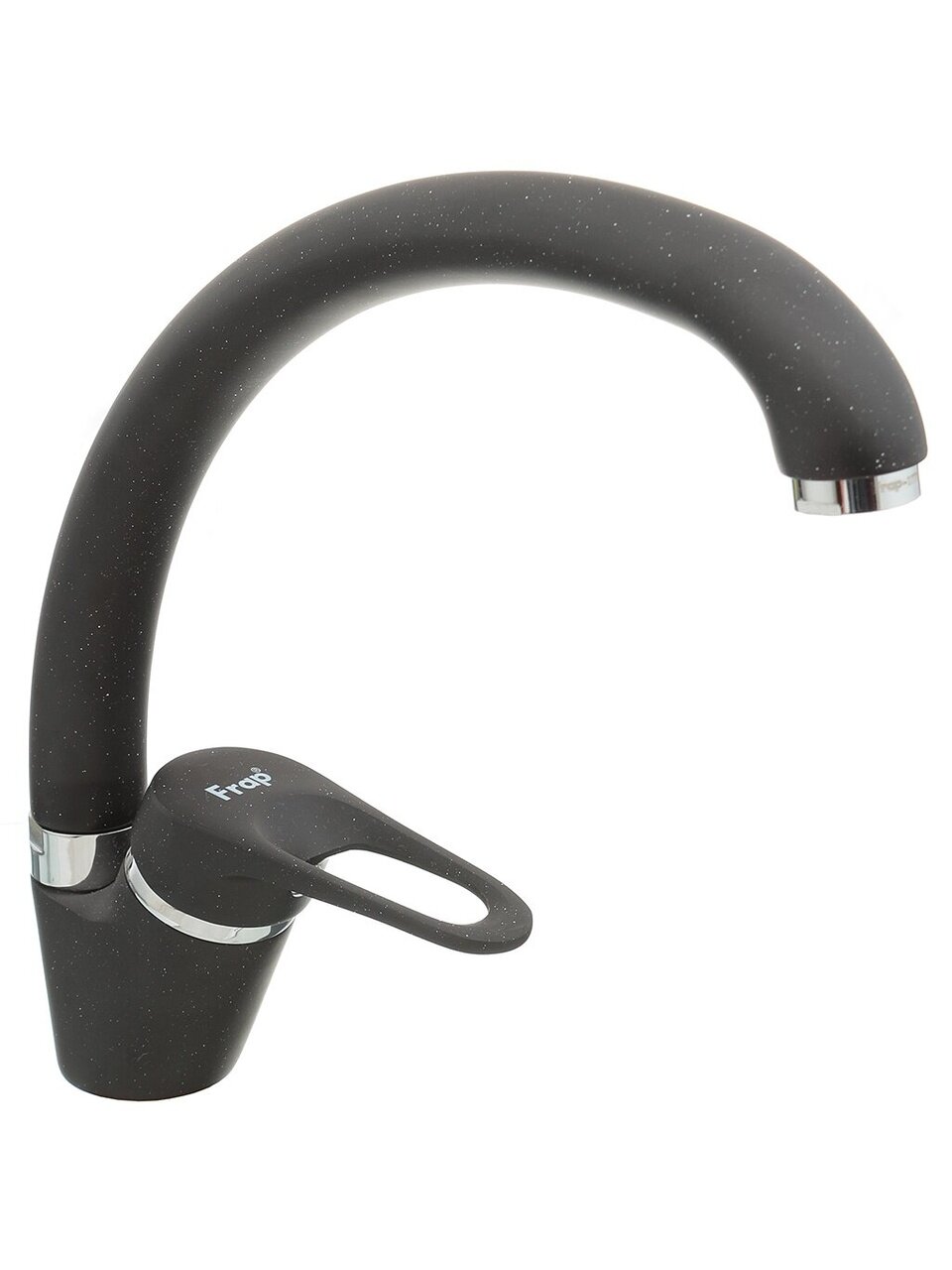 Смеситель Frap F4113-7: стильный черный акцент для кухни с латунным корпусом, высоким поворотным изливом и долговечным керамическим картриджем.