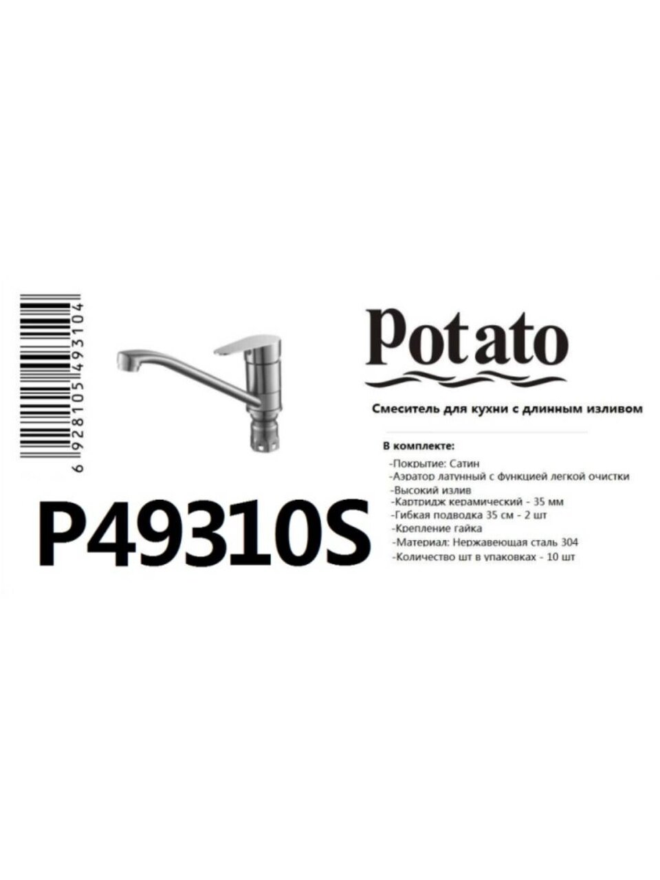 Смеситель для кухни Potato P49310S — идеальное решение для стильной кухни: нержавеющая сталь, глянцевая поверхность, гибкая подводка, гарантия 12 месяцев.