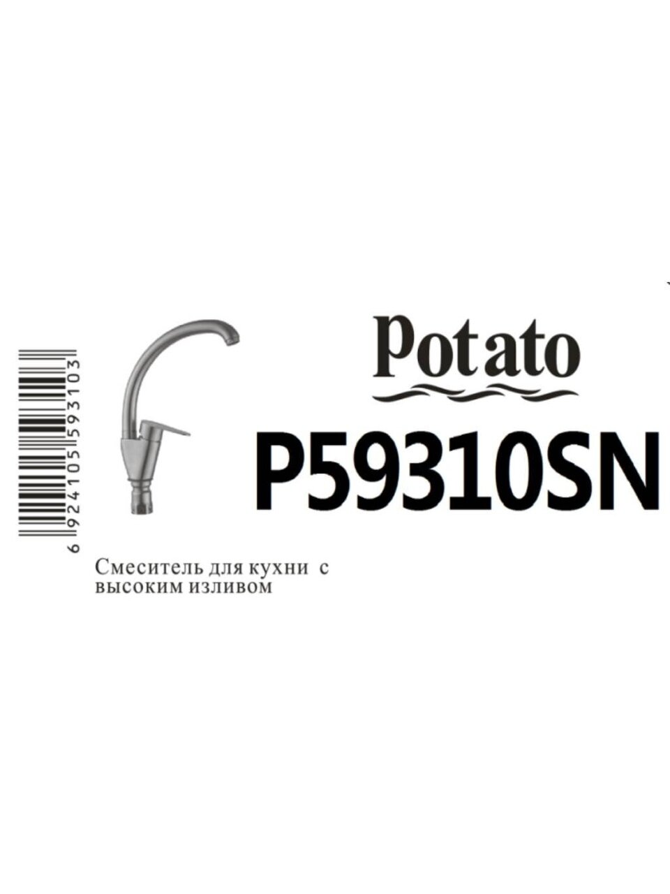Смеситель для кухни Potato P59310SN — надежное решение из нержавеющей стали с высоким поворотным изливом и керамическим картриджем для долговечной работы.