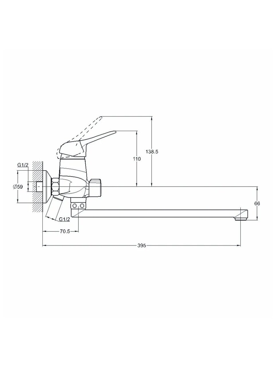 Смеситель устанавливается вертикально на стену, монтаж осуществляется на 2 отверстия с межосевым расстоянием 150 мм. Крепление — гайка, стандарт подводки шланга 1/2".