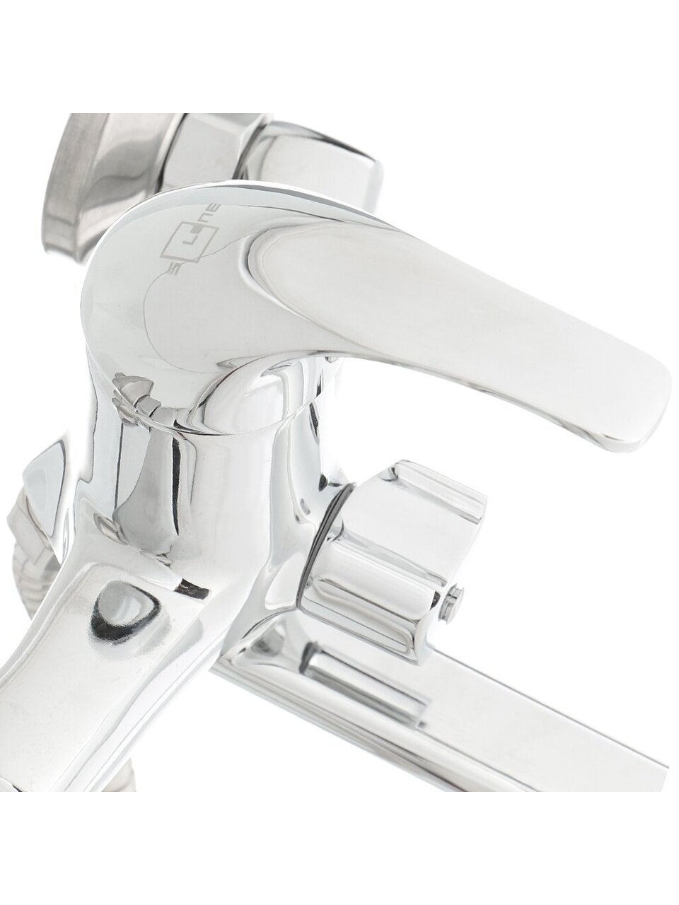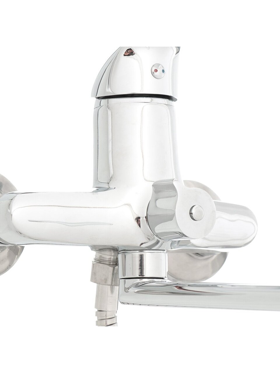 Длина поворотного излива — 35 см, форма — плоская, что удобно для наполнения ванны и использования душа. Излив не короткий и не высокий — оптимален для стандартных ванн.